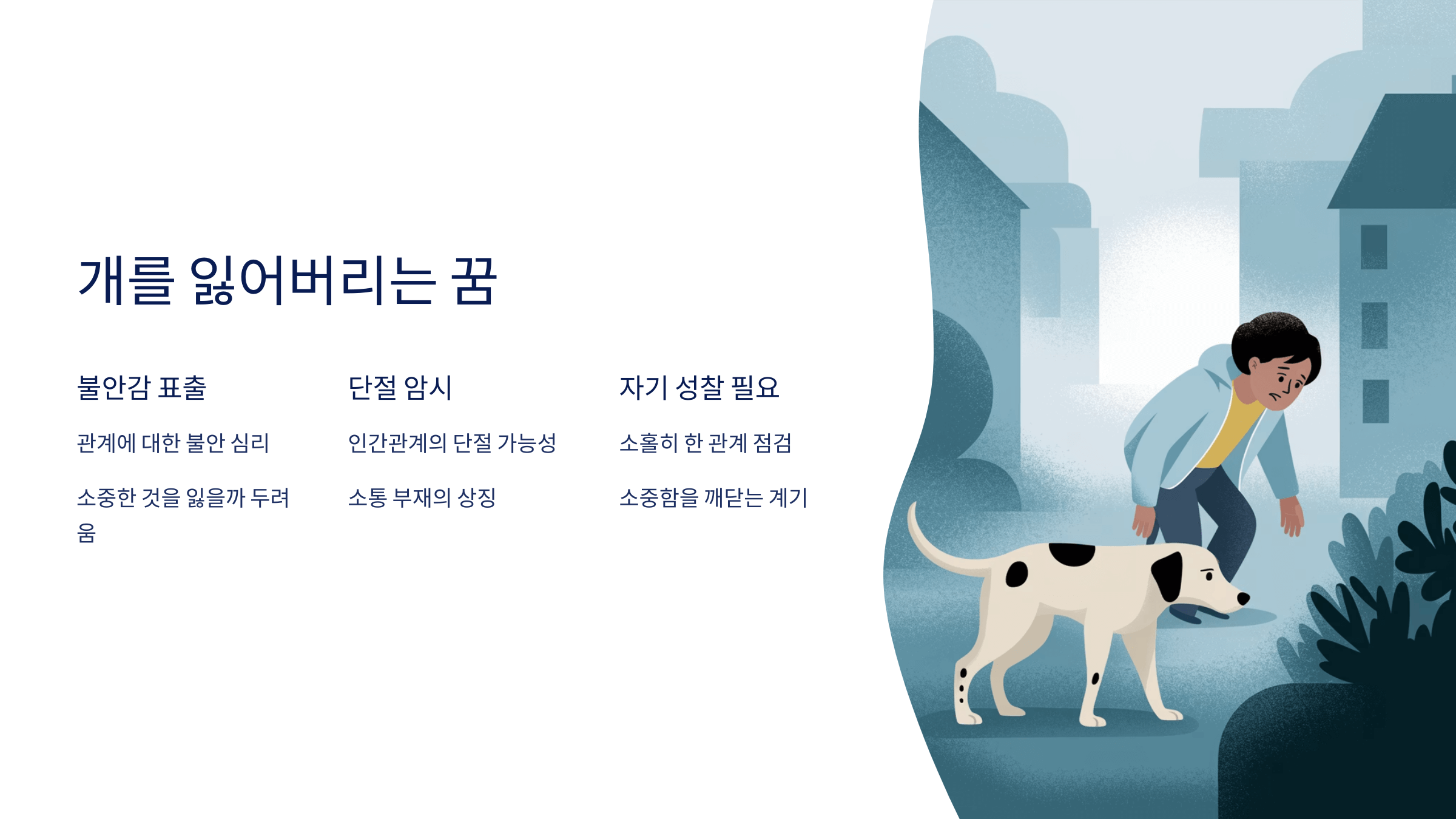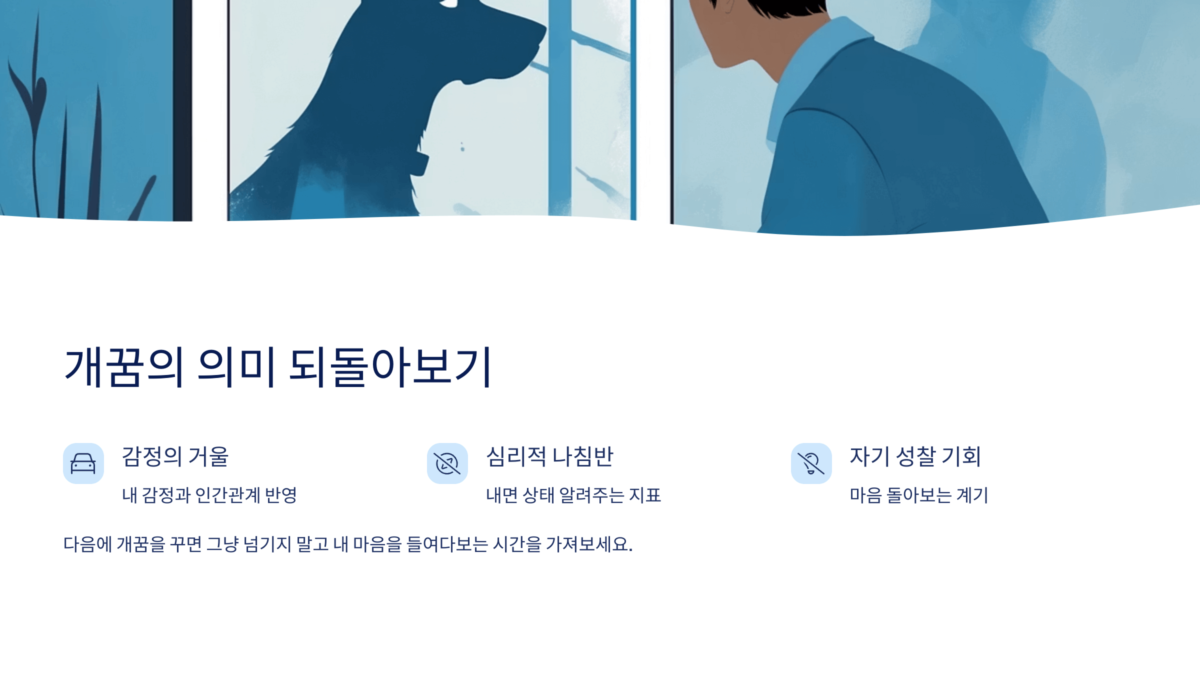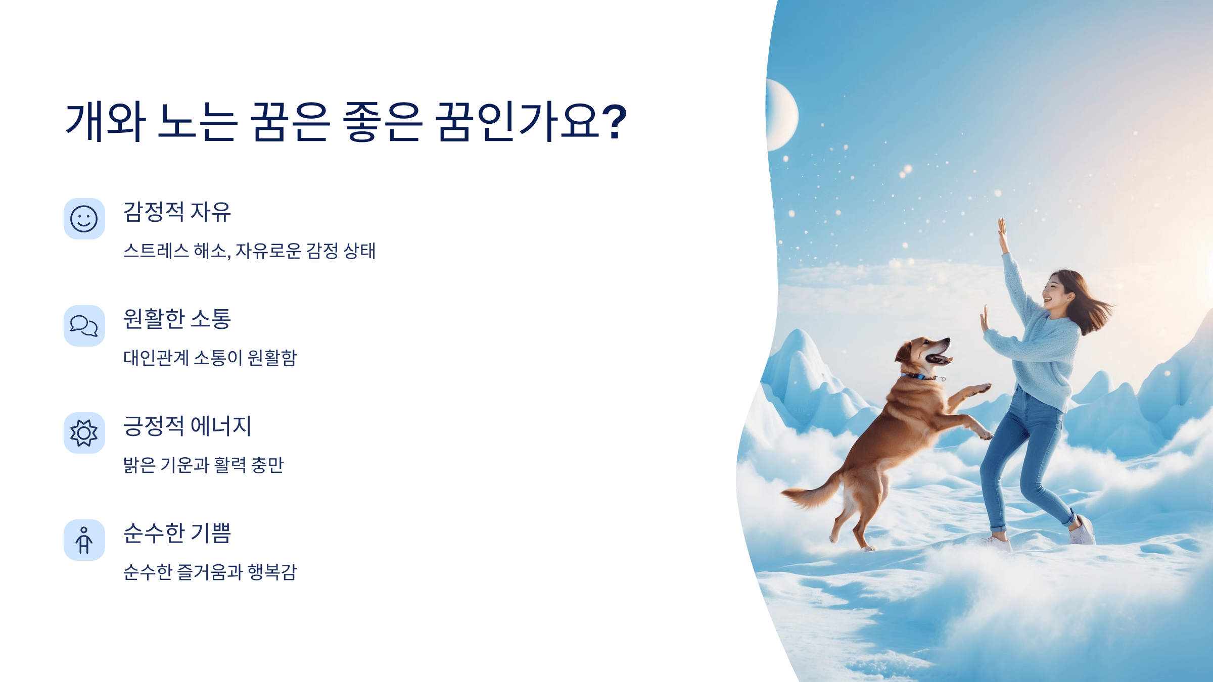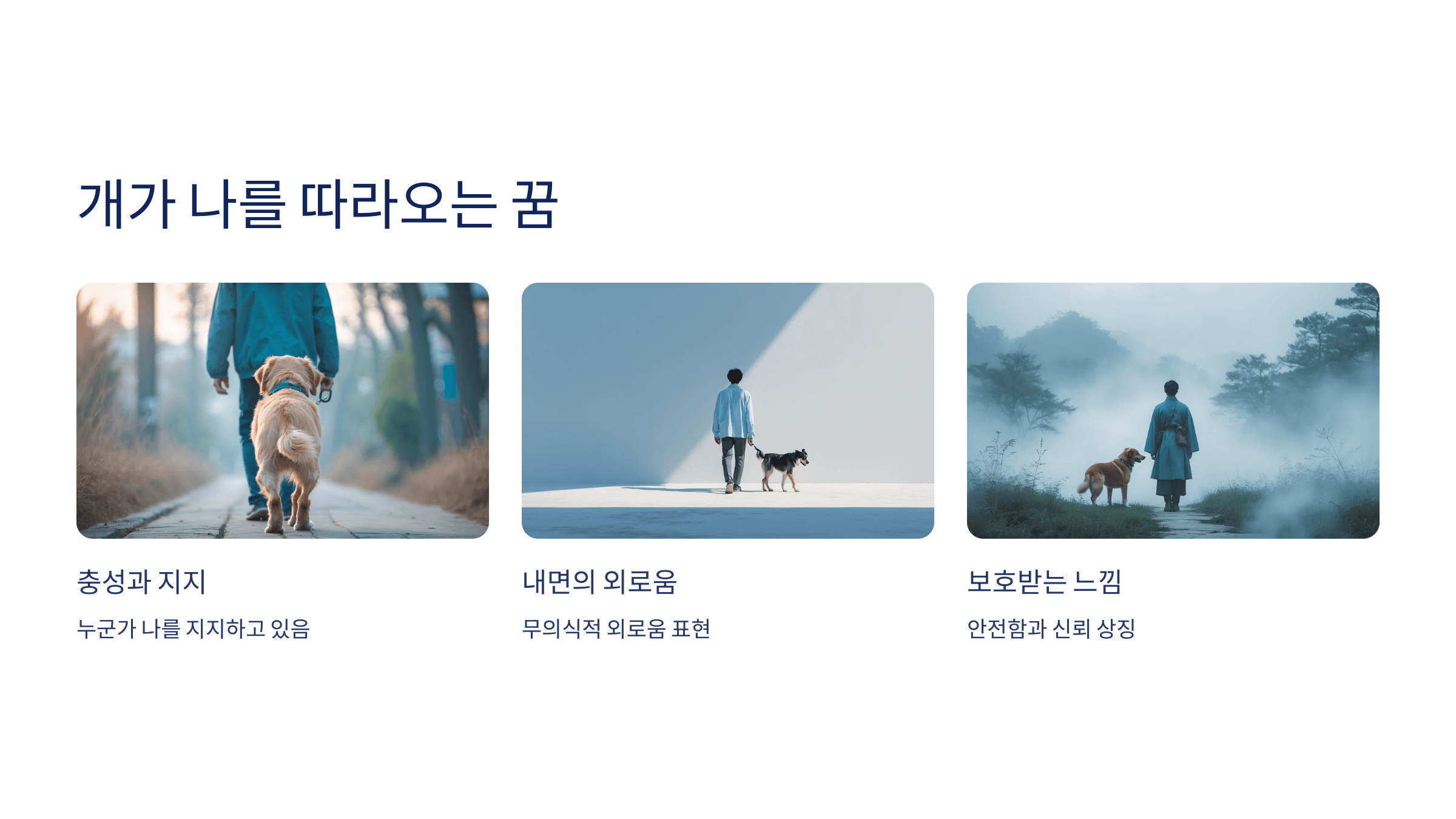 다음에 또 개가 나오는 꿈을 꾼다면, 그냥 웃고 넘기기보다는 내 마음을 돌아보는 계기로 삼아보시는 건 어떨까요? 😊