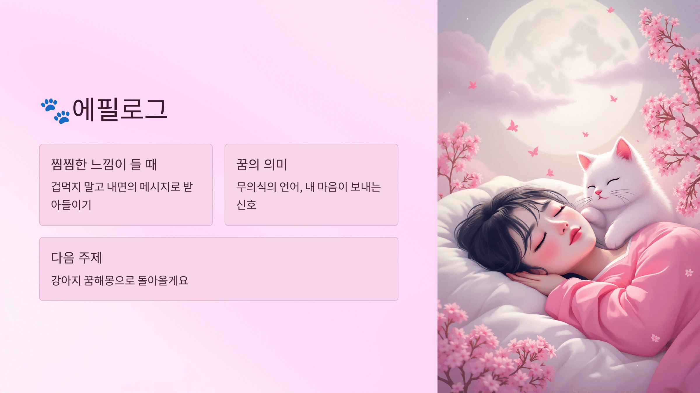 그리고 꿈 해몽은 ‘미래 예언’이 아니라 현재 상태에 대한 무의식의 힌트일 가능성이 크다는 점, 꼭 기억해주세요.