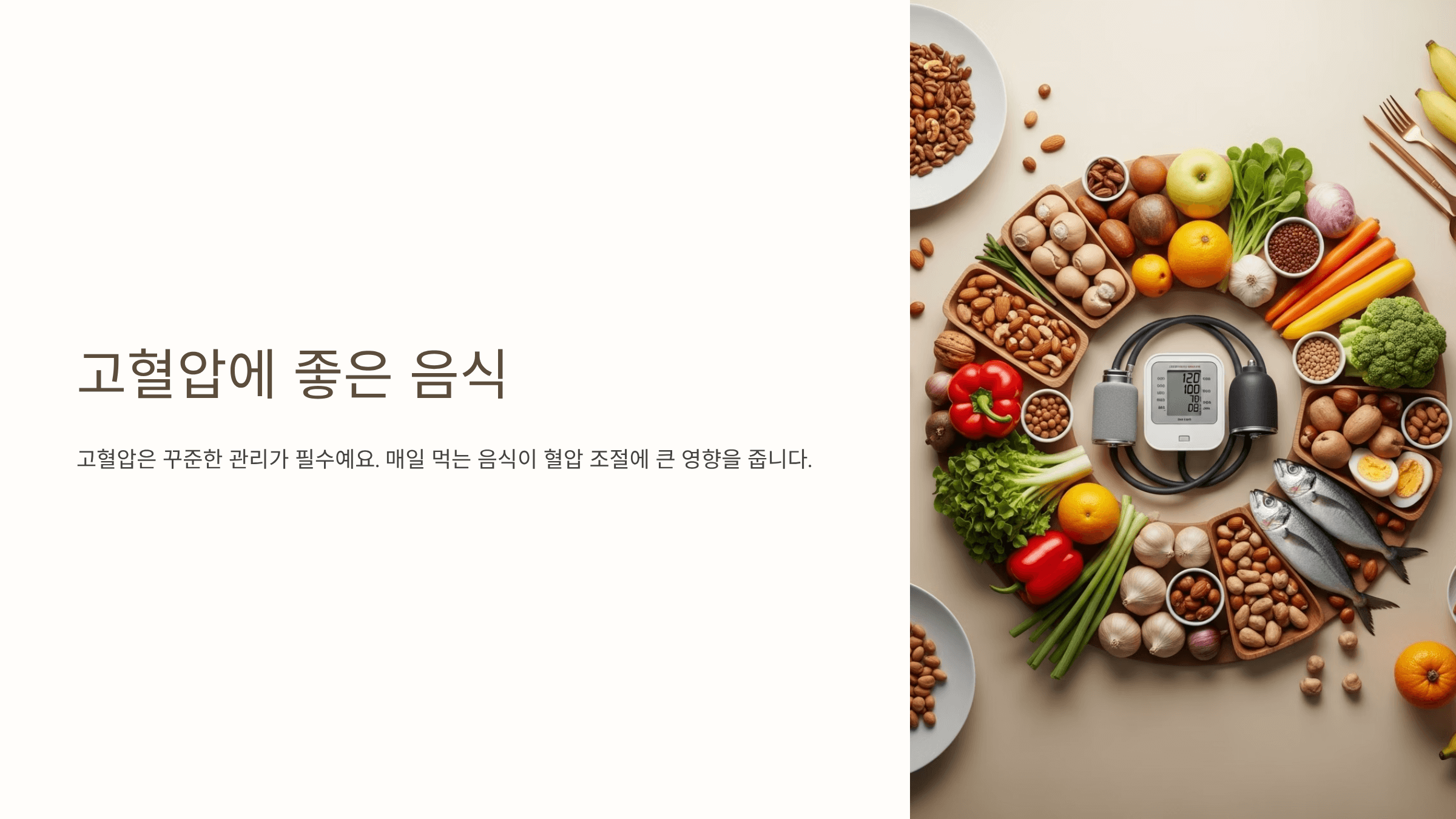 고혈압은 꾸준한 관리가 필수예요. 매일 먹는 음식이 혈압 조절에 얼마나 큰 영향을 주는지 직접 경험하면서 더 확실히 알게 됐습니다. 오늘은 고혈압 개선에 좋은 음식 12가지를 정리해드릴게요. 작은 변화만으로도 혈압 수치가 안정되고, 몸이 한결 가벼워지는 걸 느끼실 수 있을 거예요.