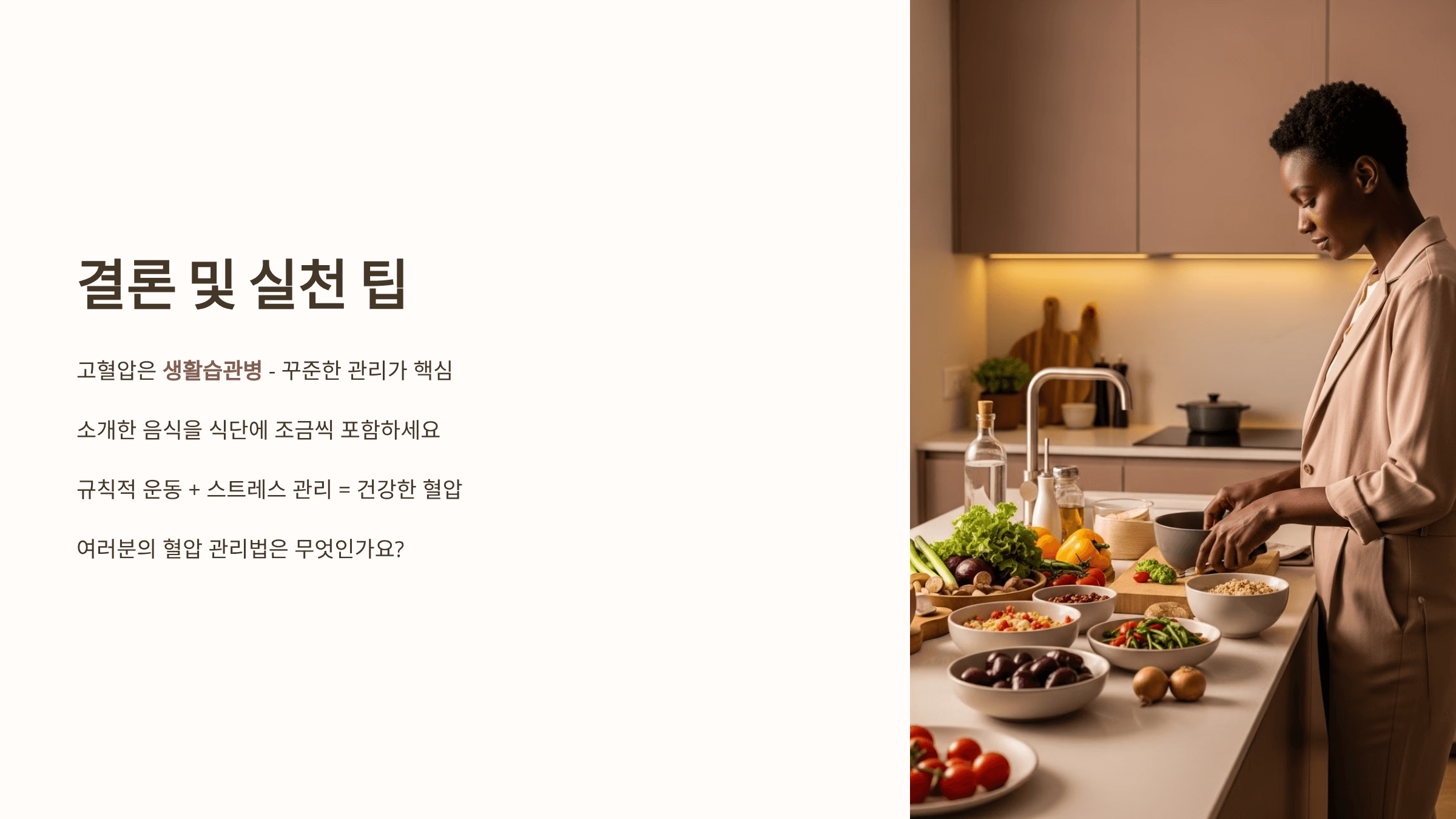 그래서 평소 식습관 관리와 생활습관 개선이 정말 중요합니다. 제가 직접 음식 관리에 집중했을 때 혈압이 점점 안정되는 걸 체감했어요.