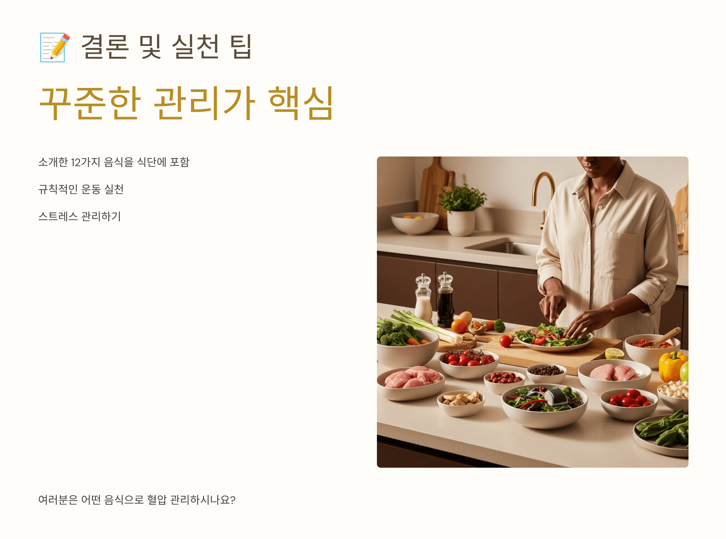 여러분은 어떤 음식을 통해 혈압 관리를 하고 계신가요? 댓글로 나눠주시면 많은 분들에게 도움이 될 거예요!