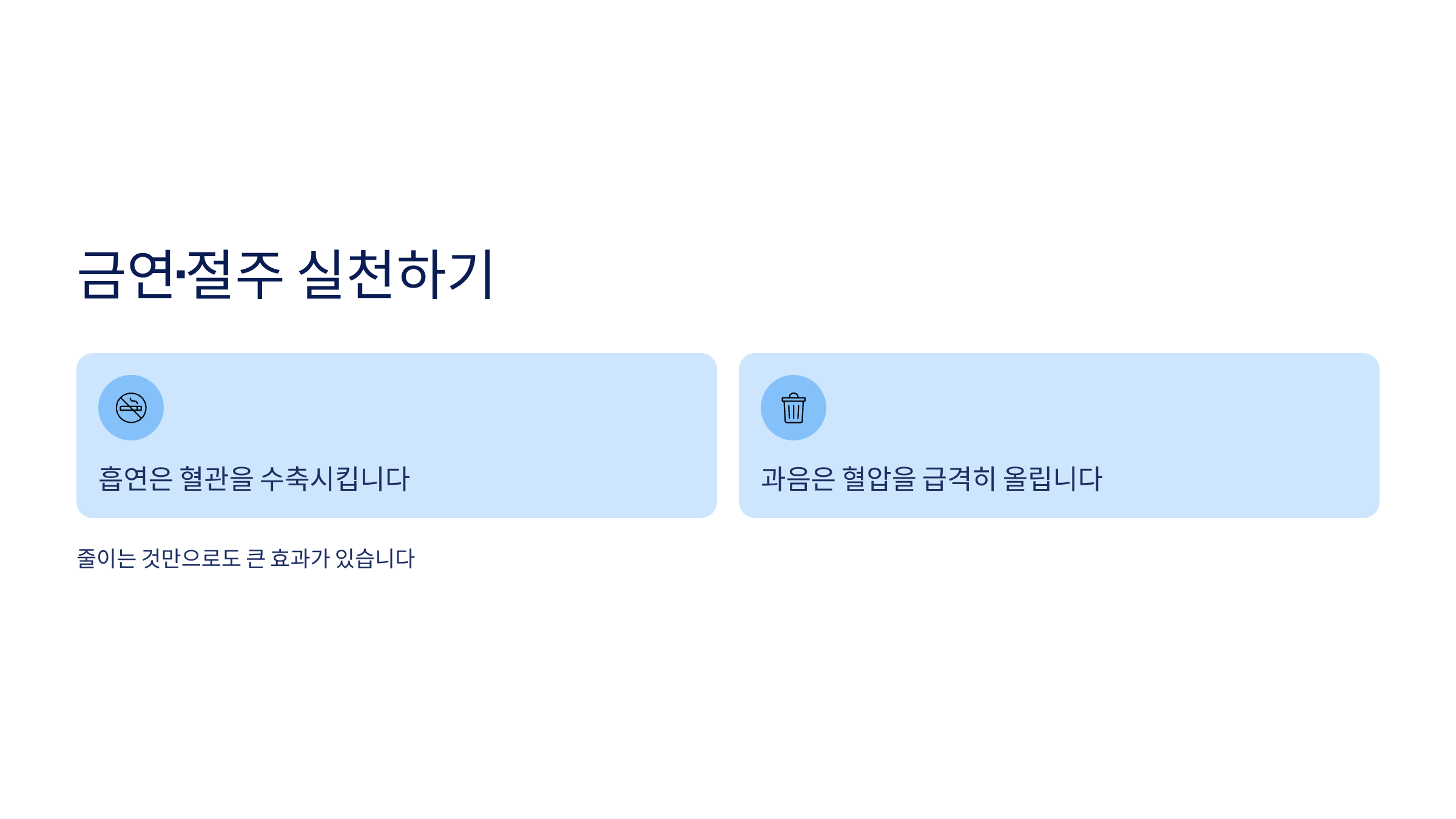 흡연은 혈관을 수축시키고, 과음은 혈압을 급격히 올립니다. 줄이는 것만으로도 큰 효과가 있습니다.