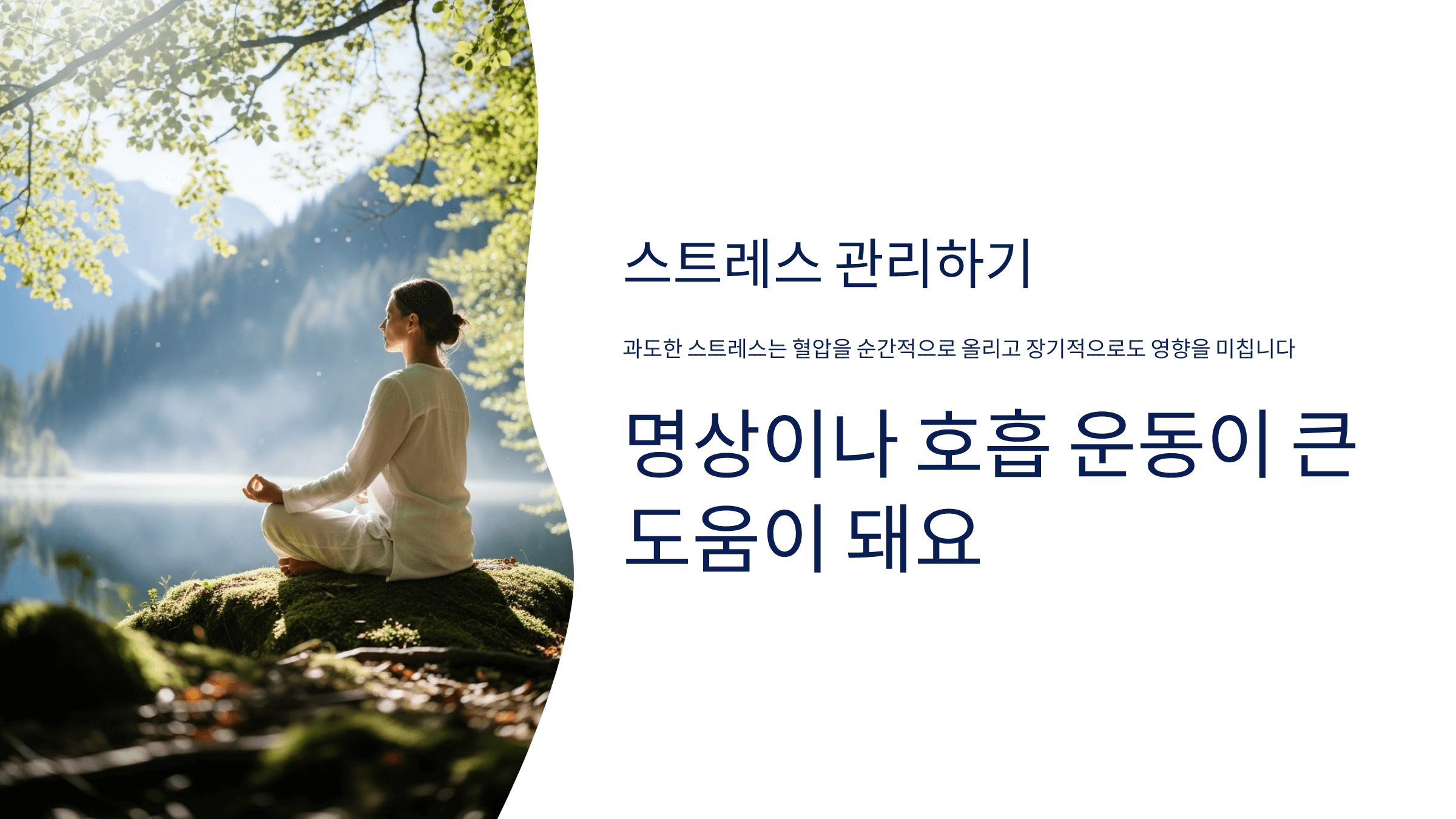 과도한 스트레스는 혈압을 순간적으로 올리고 장기적으로도 영향을 미칩니다. 명상이나 호흡 운동이 큰 도움이 돼요. - 금연·절주 실천하기