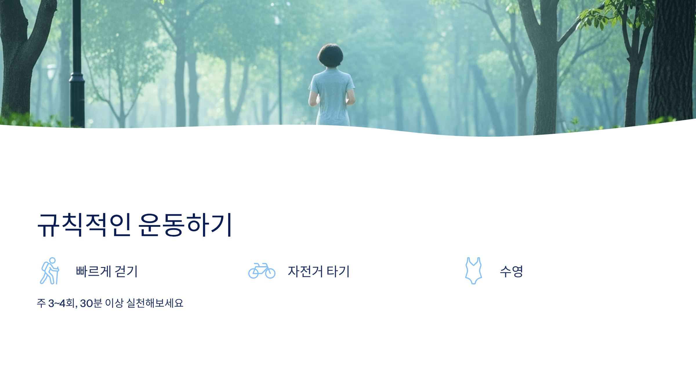 오늘부터는 식습관, 운동, 스트레스 관리 중 한 가지라도 실천해보세요.