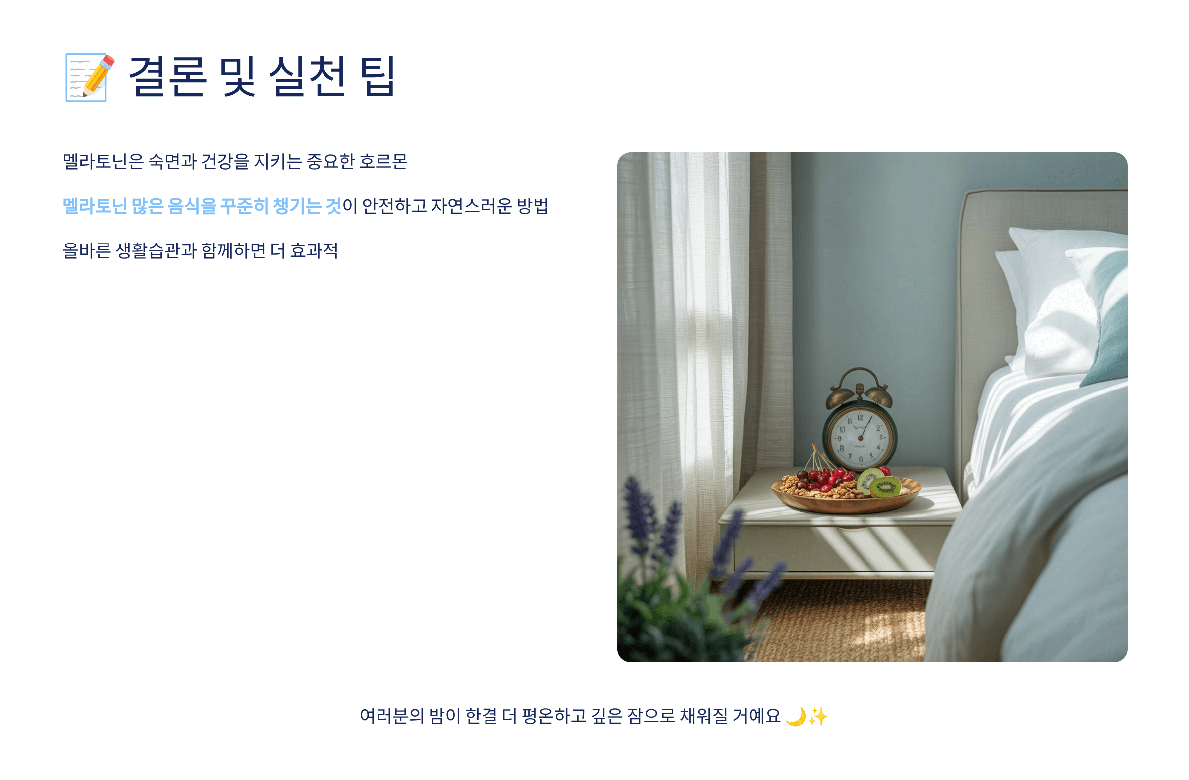 작은 식습관 변화만으로도 숙면과 활력을 동시에 챙길 수 있습니다. 🌙💤