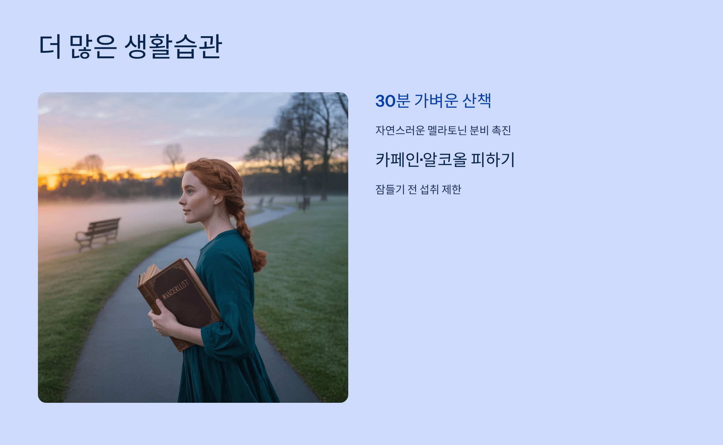 - 30분 가벼운 산책으로 자연스러운 멜라토닌 분비 촉진