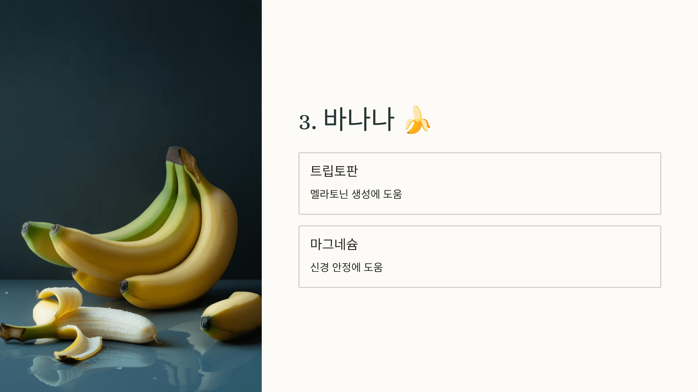 트립토판과 마그네슘이 함께 들어 있어 멜라토닌 생성과 신경 안정에 도움을 줍니다.