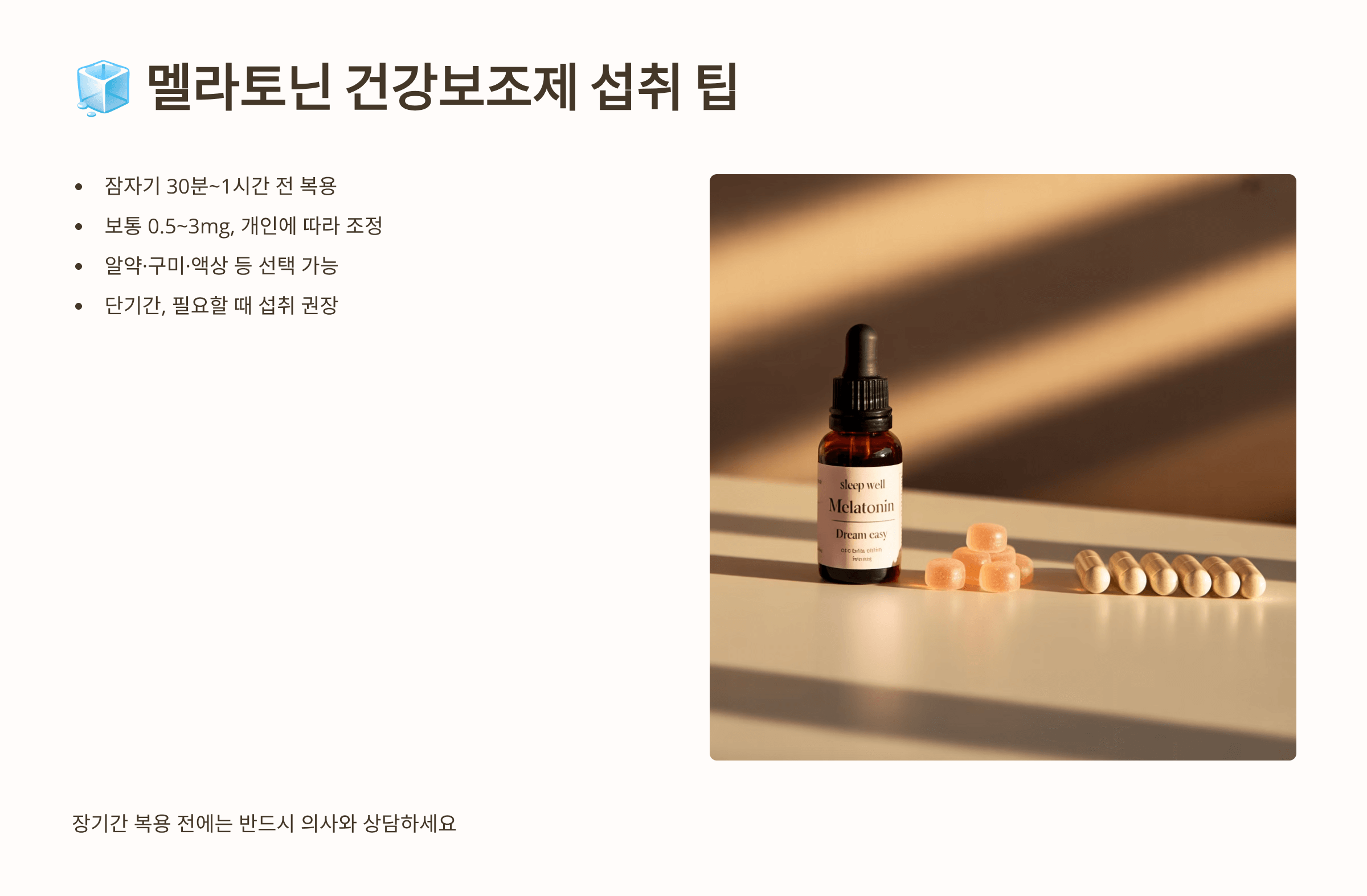 - 섭취 시간: 잠자기 30분~1시간 전 복용 권장