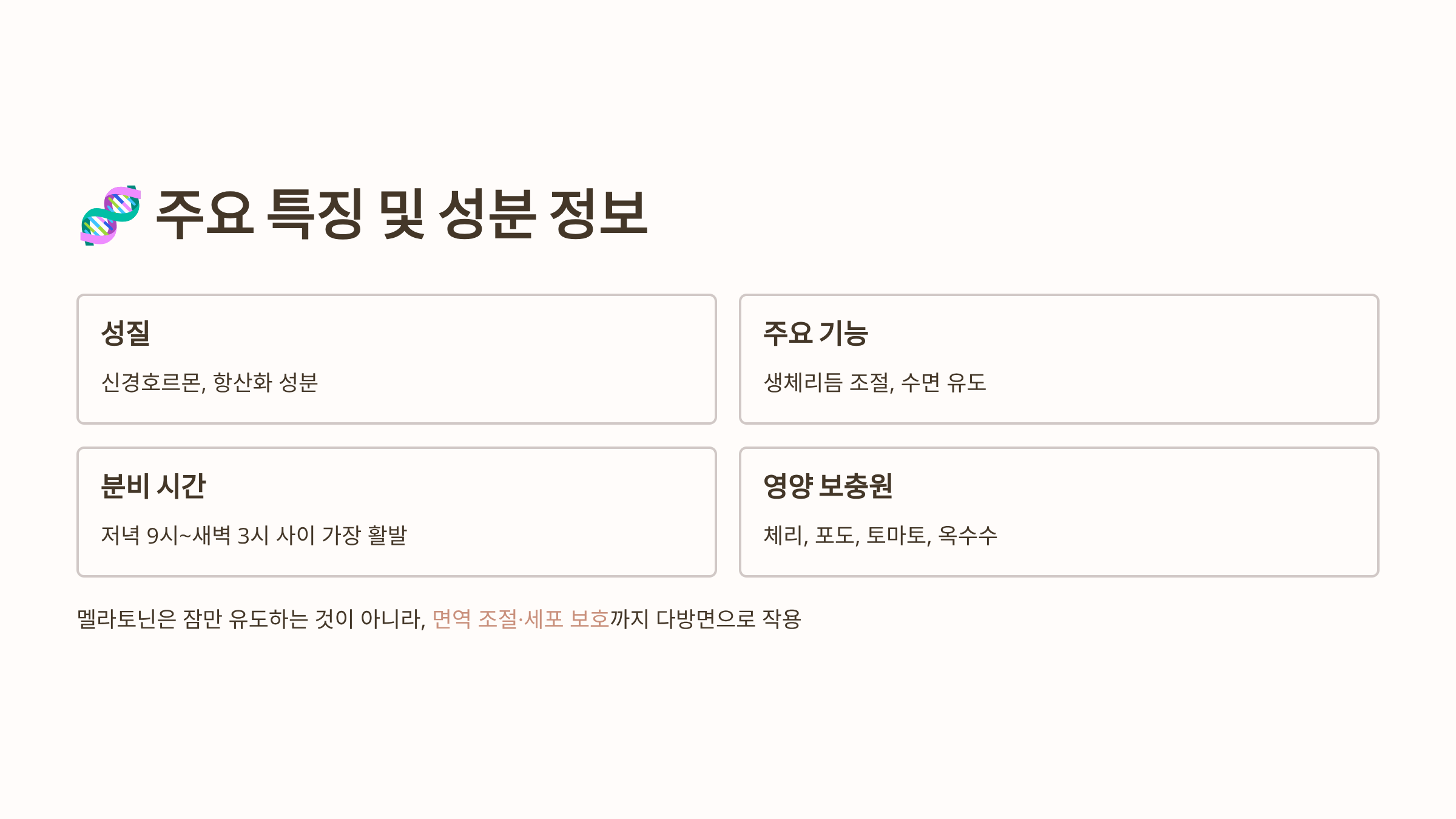 - 주요 기능: 생체리듬 조절, 수면 유도