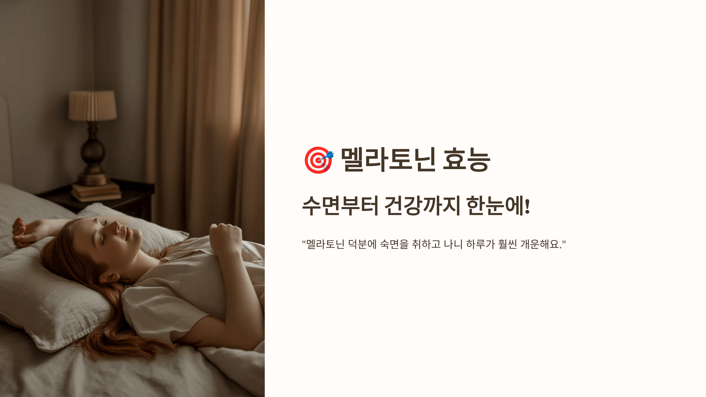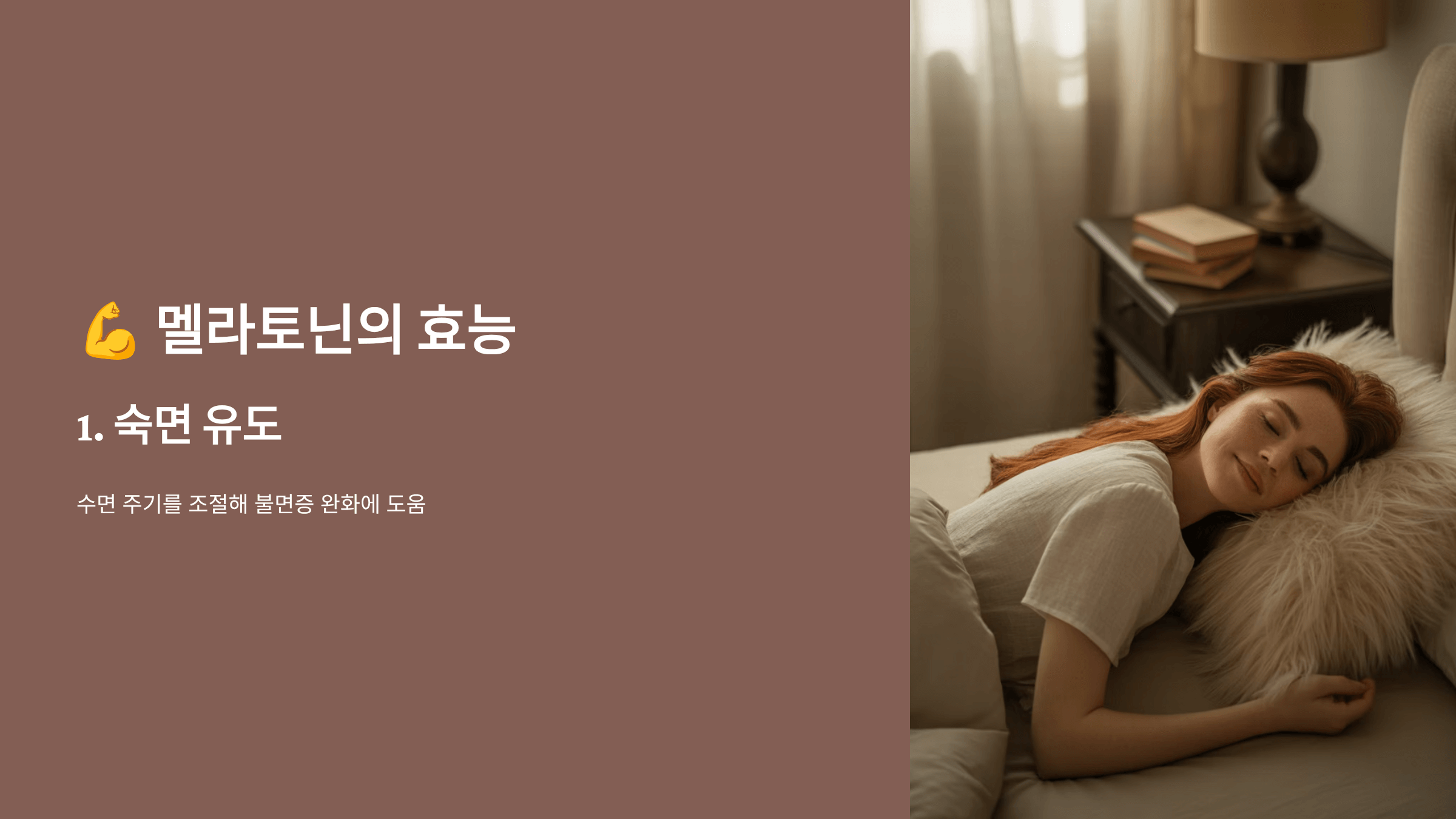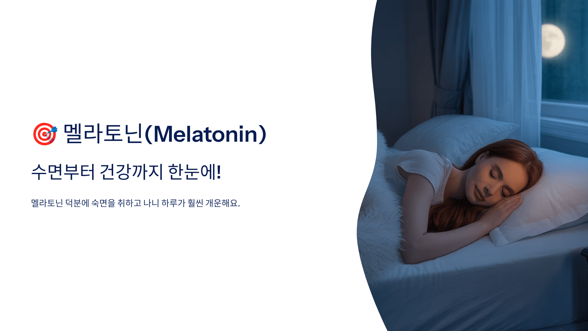 특히 불면증, 수면 부족으로 고생하는 분들에게 멜라토닌 보충은 큰 도움이 될 수 있어요.