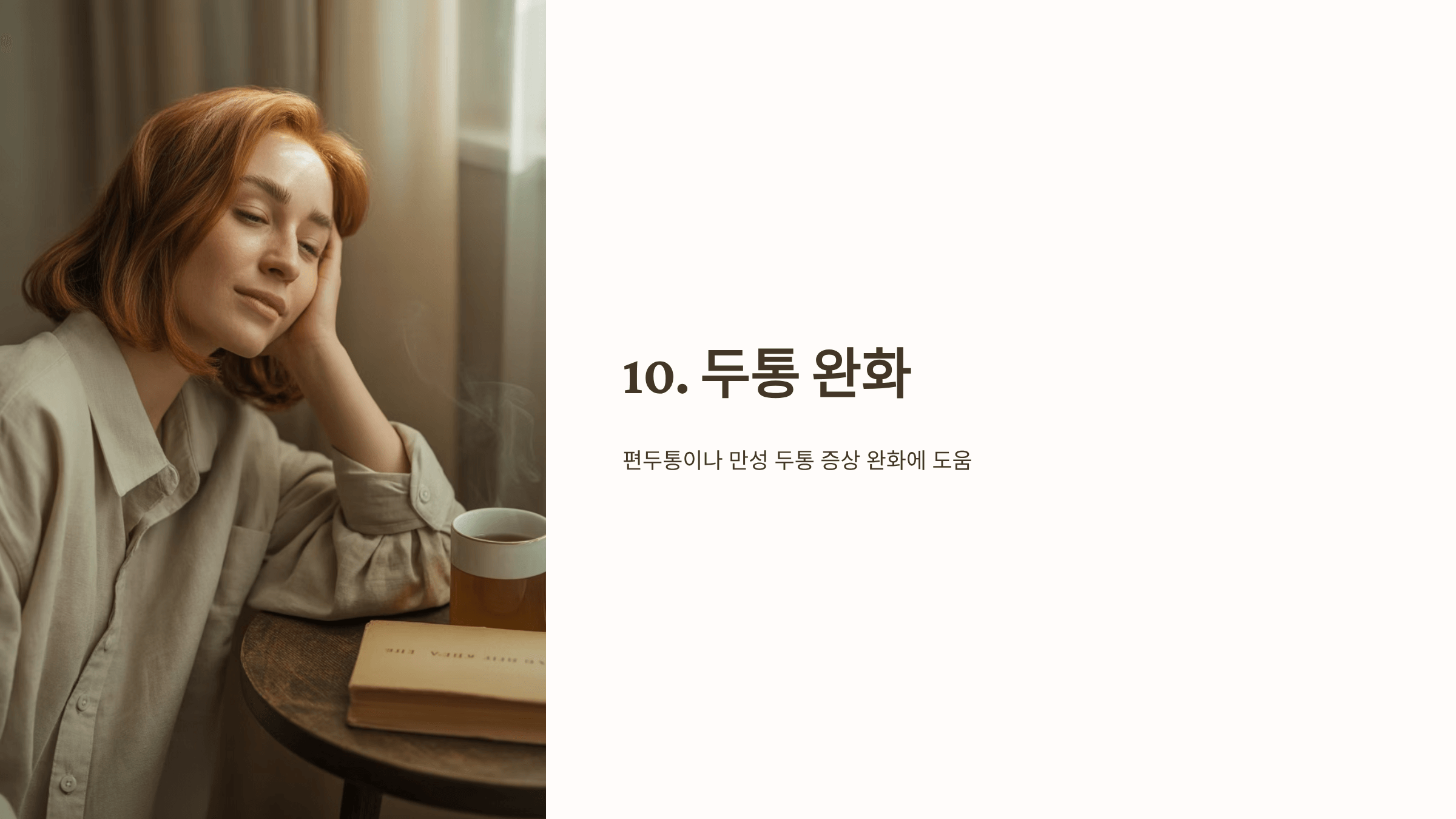 멜라토닌은 신경계 안정에도 관여해 편두통이나 만성 두통 완화에 도움이 될 수 있어요.