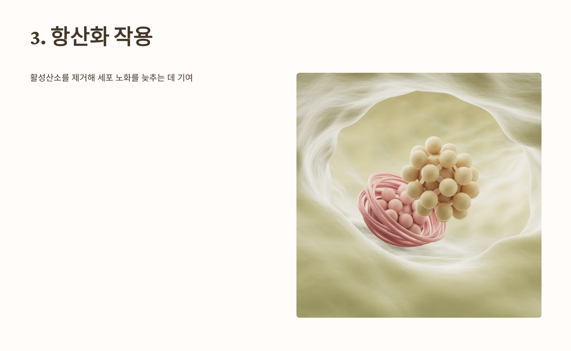 활성산소를 제거해 세포 손상을 막고, 노화를 늦추는 데 도움을 줍니다.