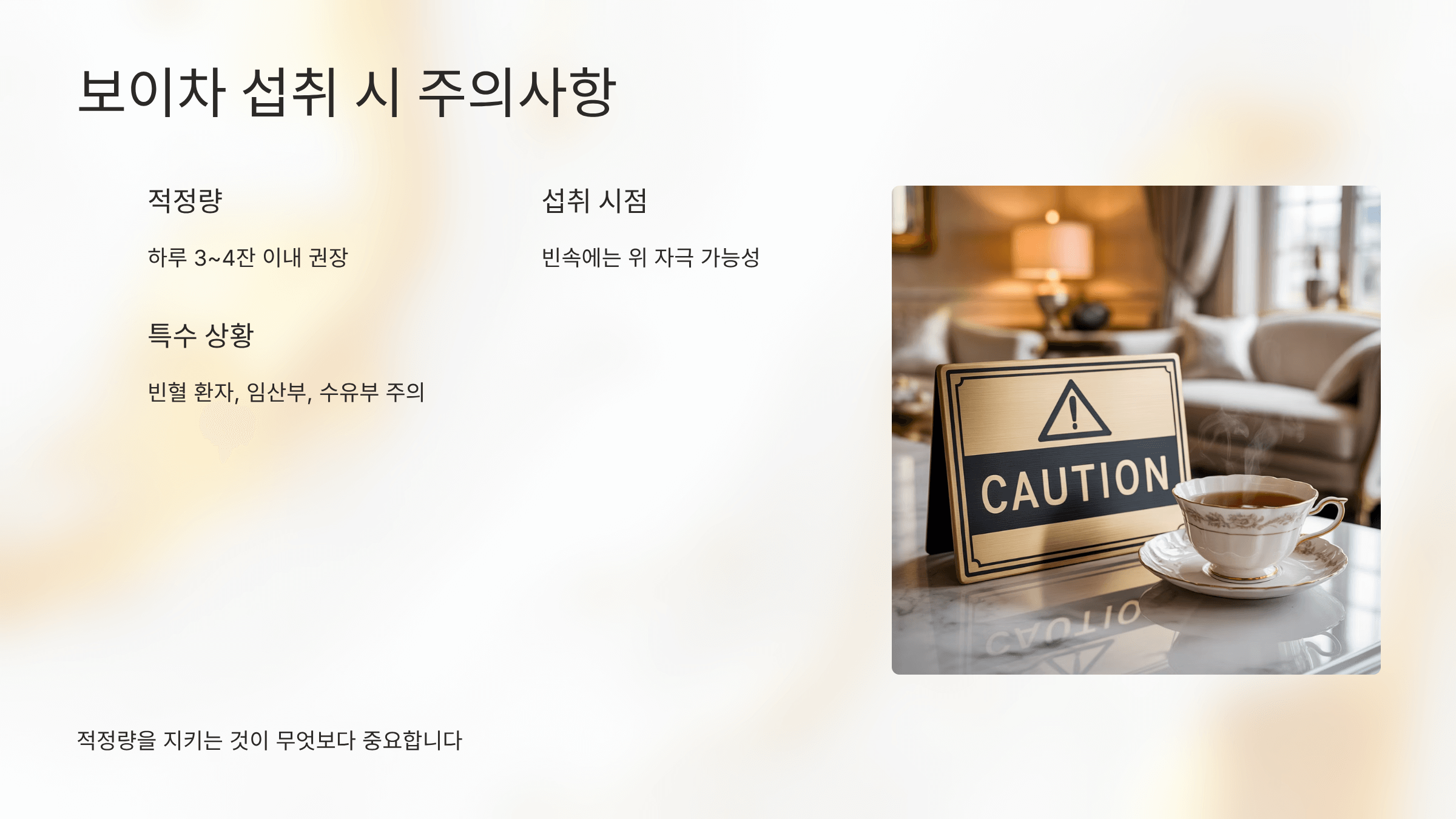 보이차는 건강에 좋은 차이지만, 과용하면 오히려 부담이 될 수 있습니다.