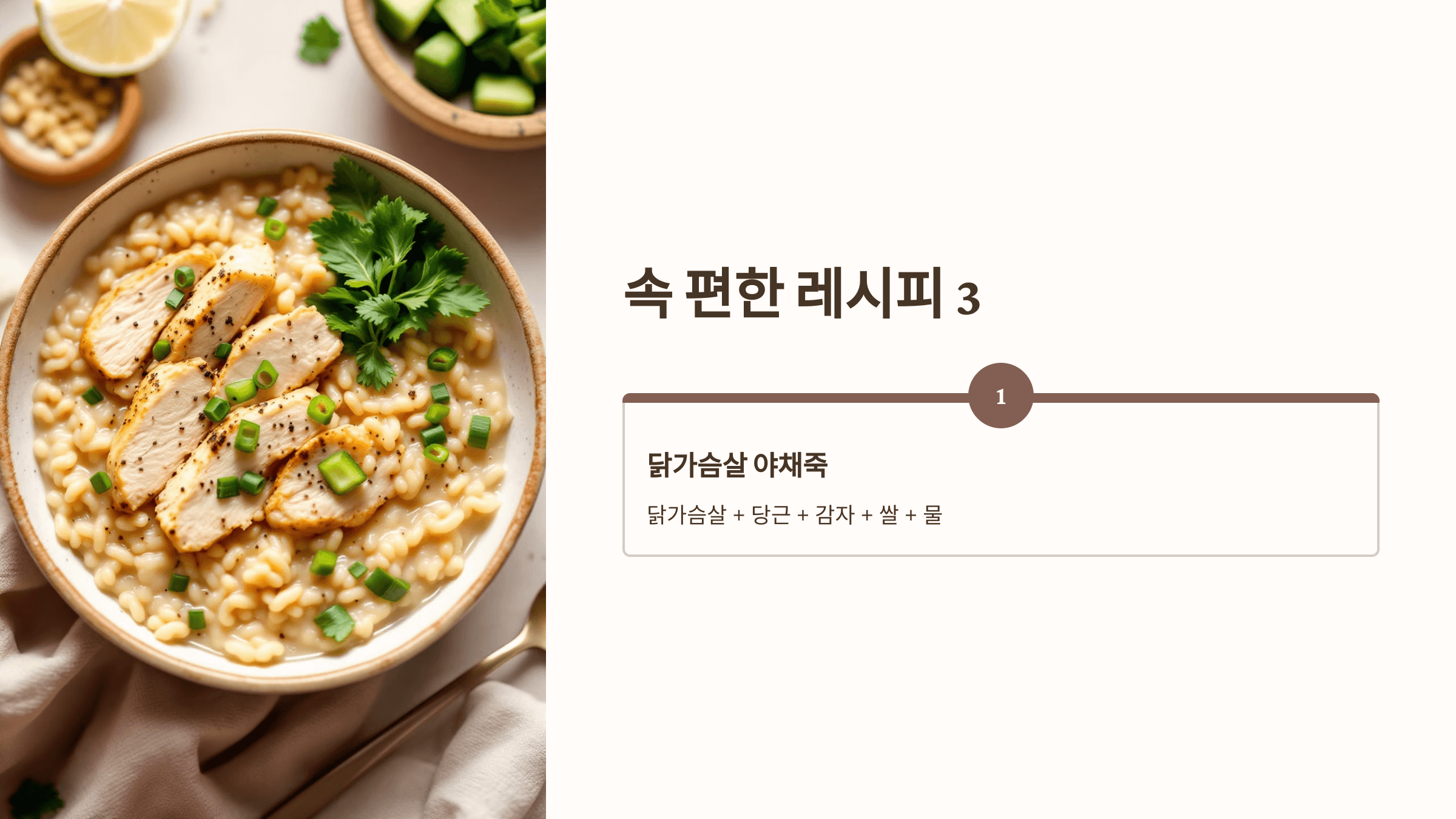 (자극 없고 위점막 자극에도 안전해요.) - 닭가슴살 야채죽