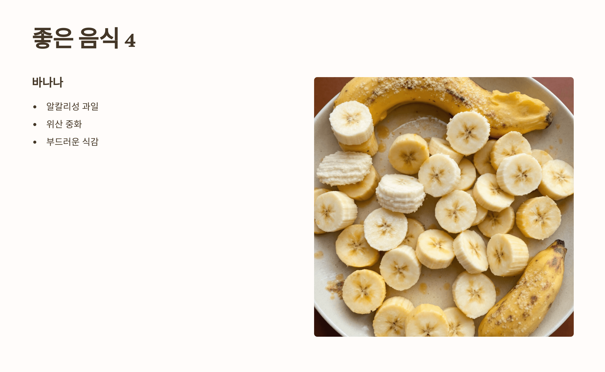 알칼리성 과일로 위산을 중화시키는 작용을 하며, 식감이 부드러워 식도 자극이 적습니다. 아침 공복 섭취에도 부담이 없어요.