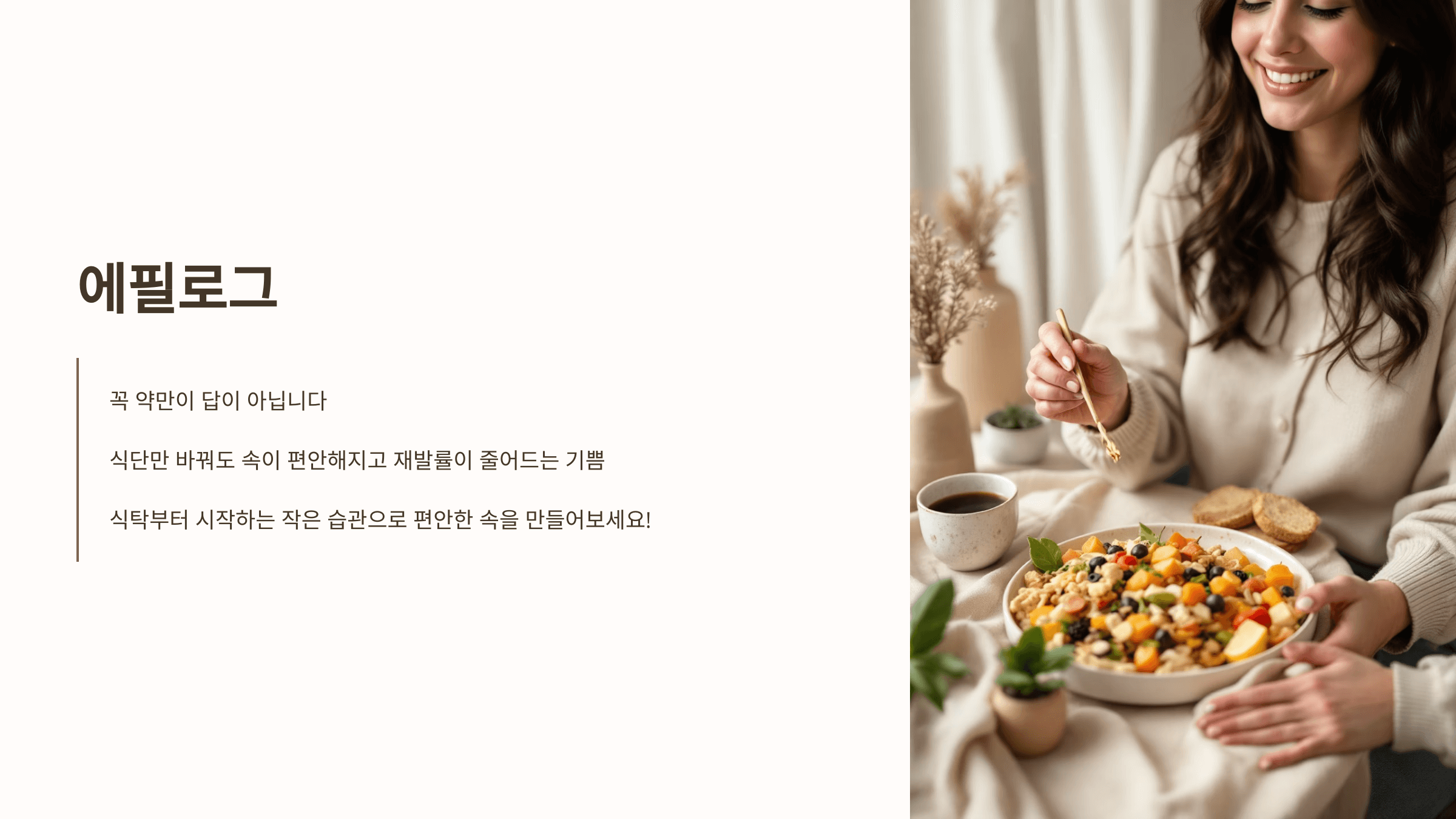 여러분도 식탁부터 시작하는 작은 습관으로, 하루하루 편안한 속을 만들어보세요!