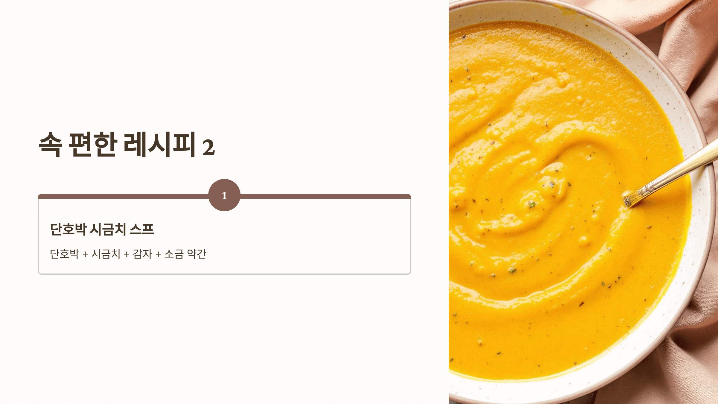 (속이 편하고 포만감도 챙겨줍니다.) - 단호박 시금치 스프