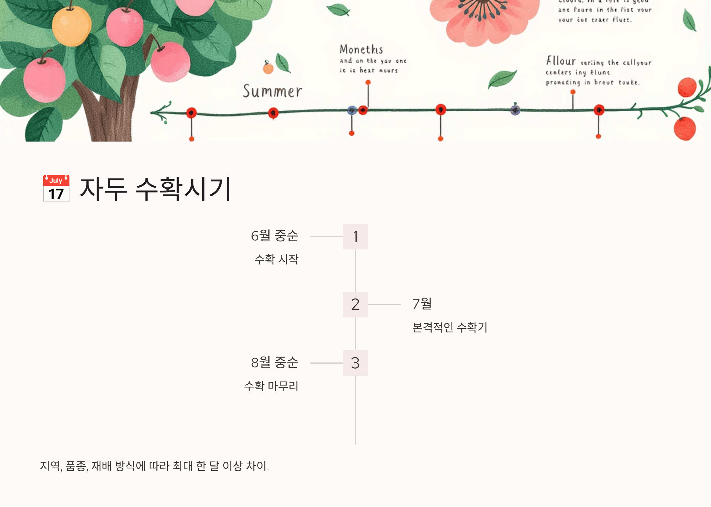 하지만 지역, 품종, 재배 방식에 따라 최대 한 달 이상 차이가 날 수 있어요.