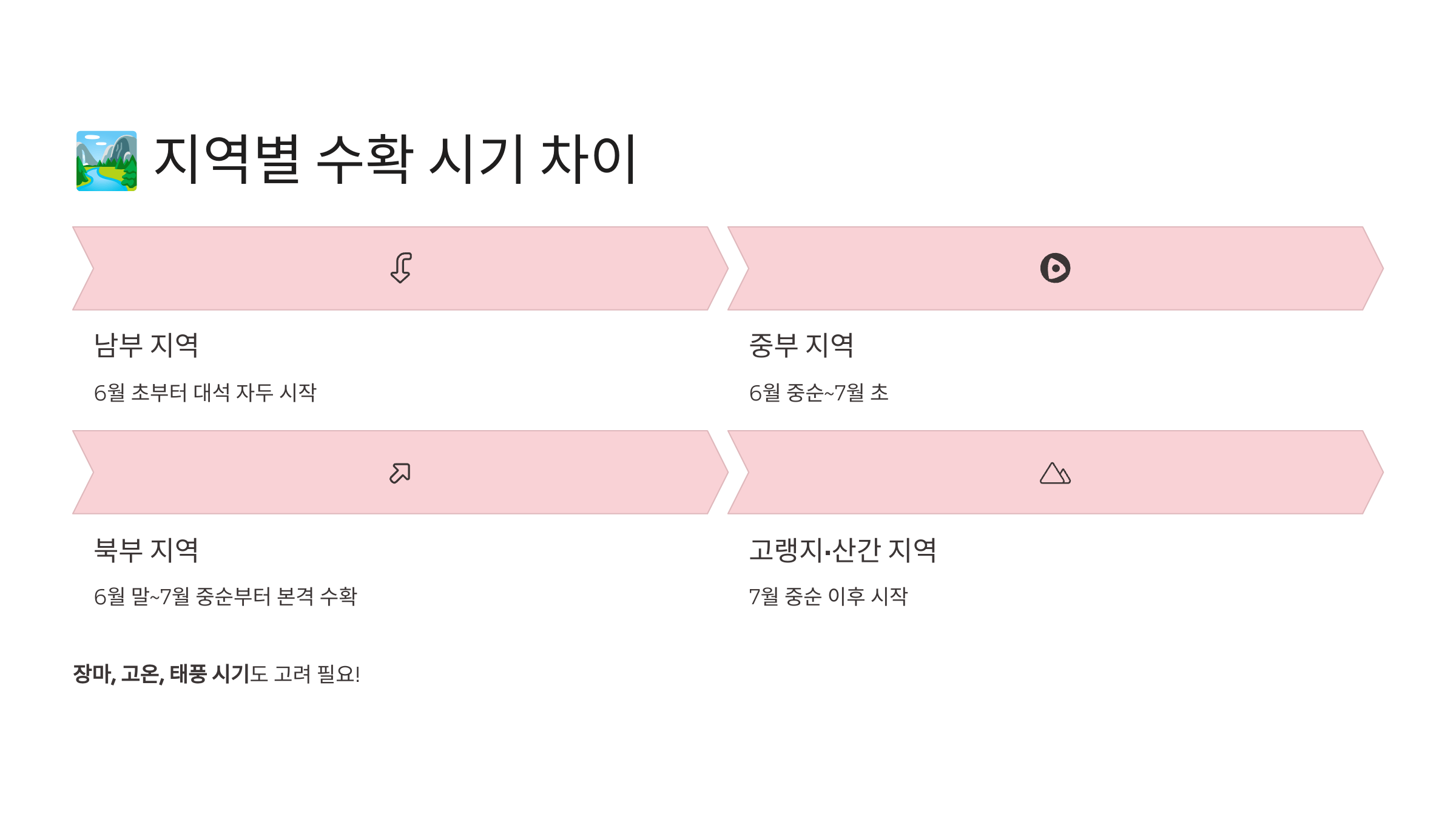 🏞️ 지역별 수확 시기 차이도 알아두세요!