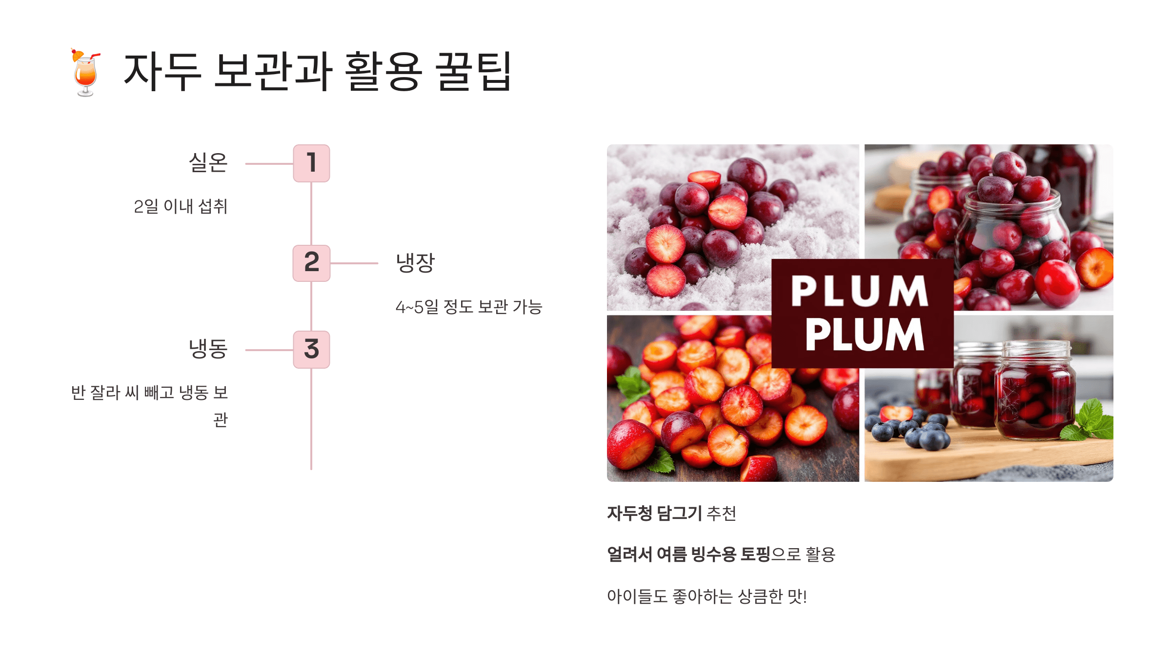 자두는 여름을 대표하는 과일이지만, 그 안에서도 타이밍을 아는 게 진짜 핵심이에요.