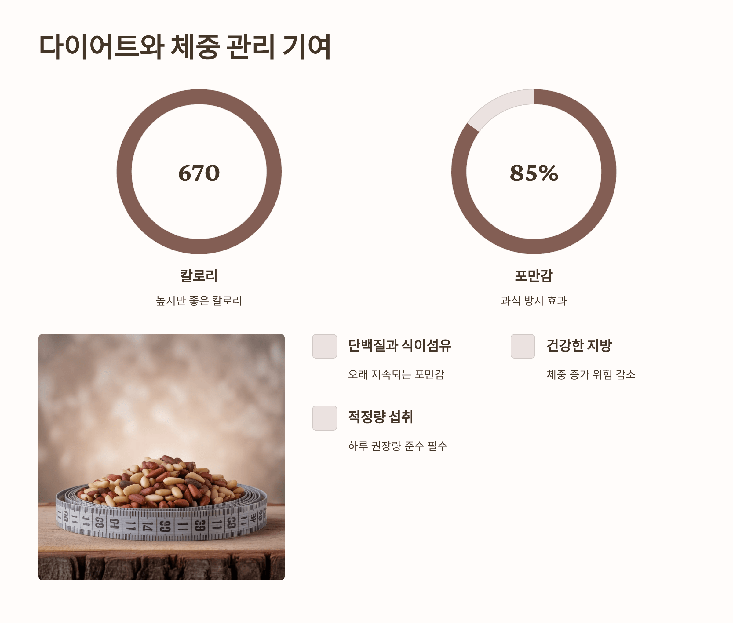 📊 이처럼 잣은 소량으로도 다양한 영양소를 공급할 수 있는 고밀도 식품이에요. 실제로 저는 집중력이 필요할 때 견과류 믹스보다 잣만 따로 챙겨 먹는데, 확실히 머리가 맑아지는 느낌이 있었습니다.