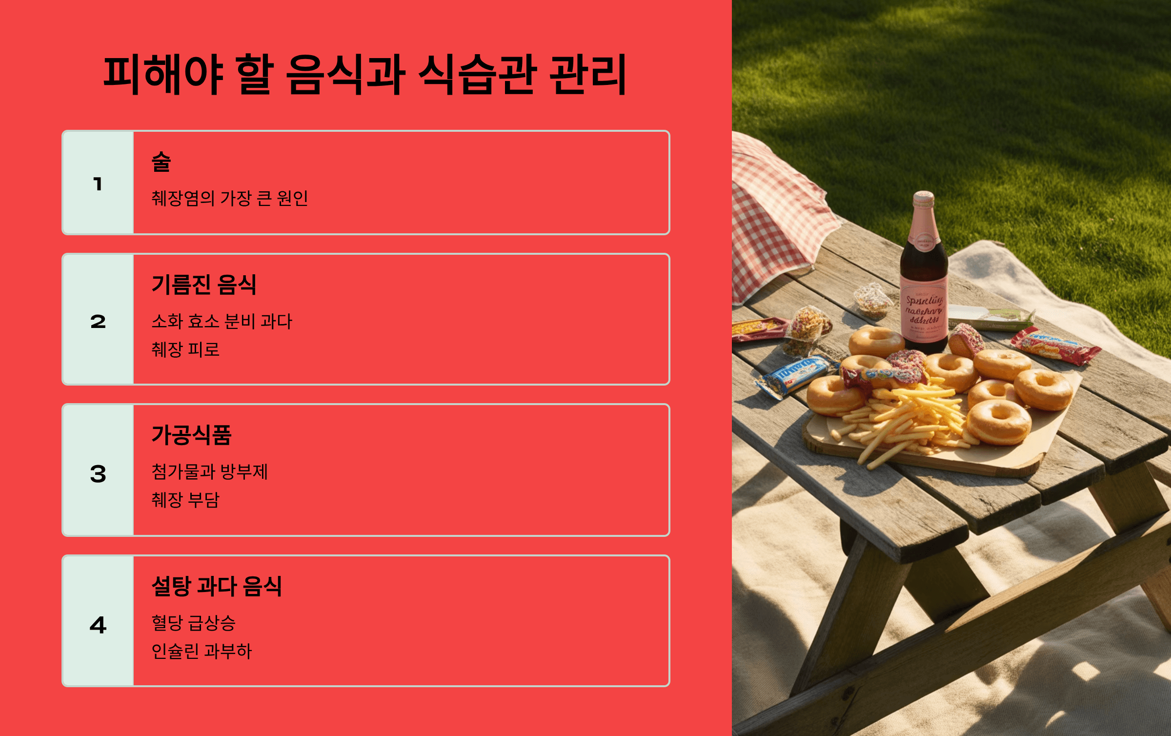 - 피해야 할 음식과 식습관 관리