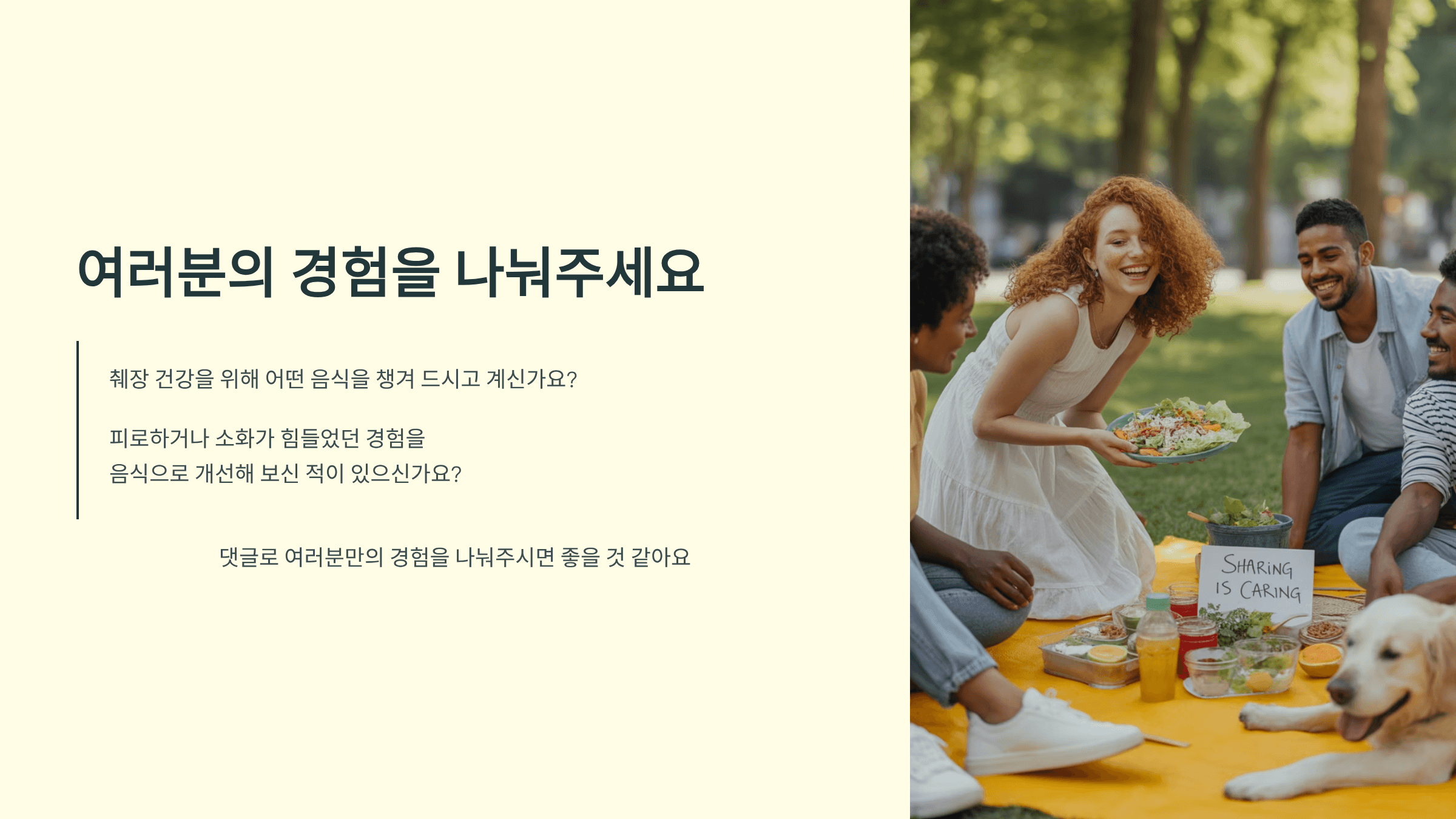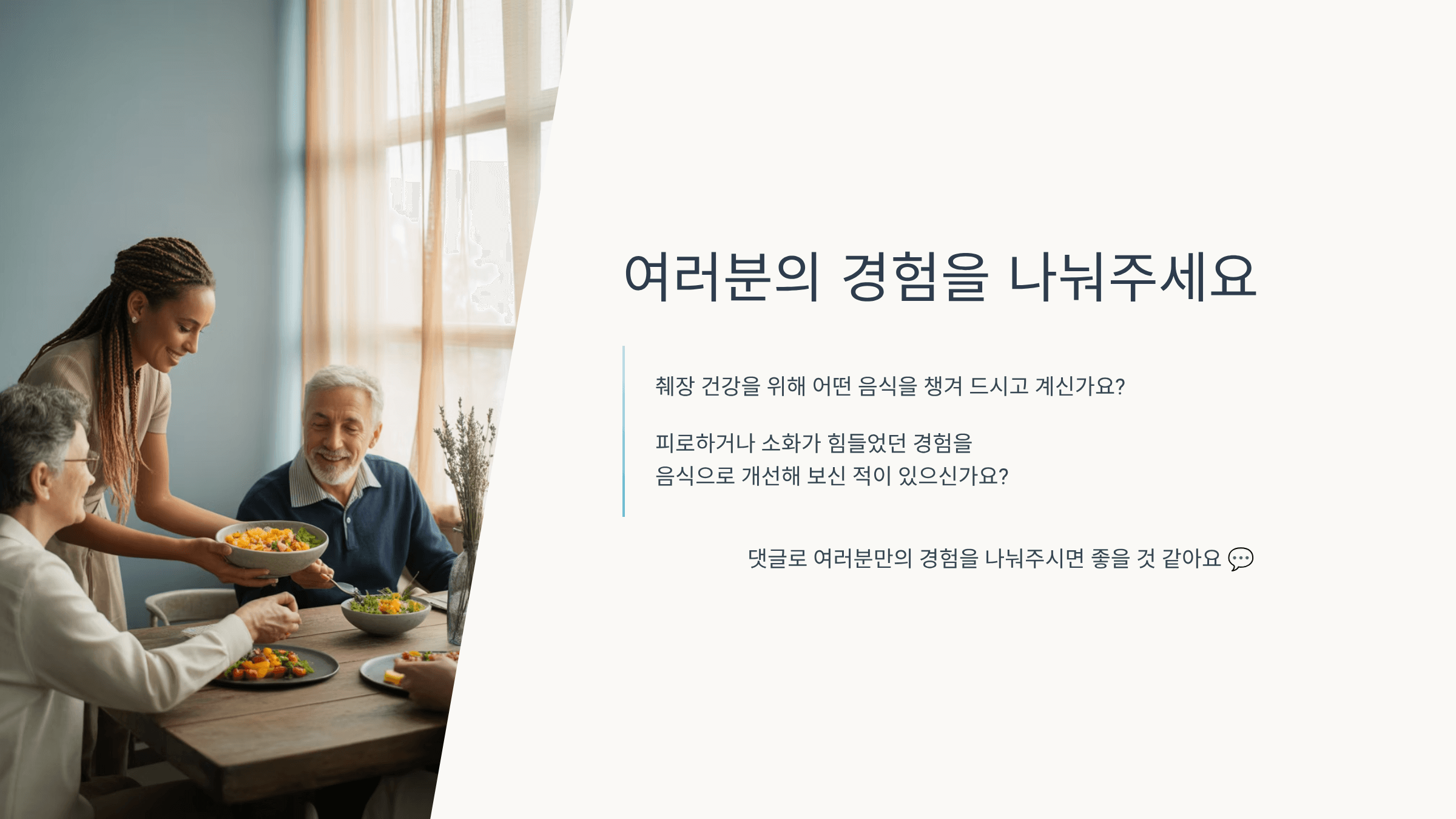 여러분들은 췌장 건강을 위해 어떤 음식을 챙겨 드시고 계신가요? 혹시 피로하거나 소화가 힘들었던 경험을 음식으로 개선해 보신 적이 있으신가요? 댓글로 여러분만의 경험을 나눠주시면 좋을 것 같아요.