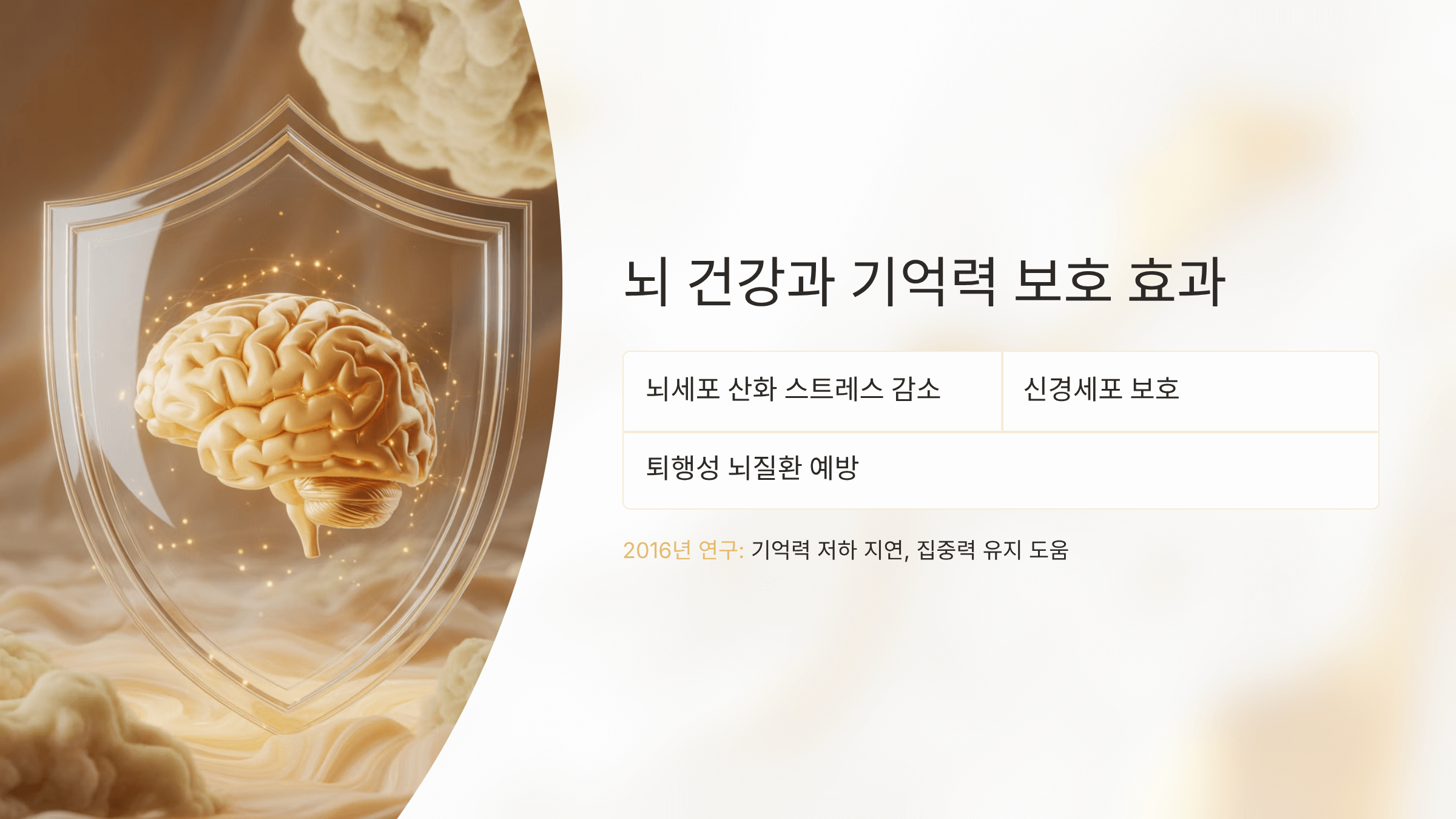 코엔자임 큐텐은 뇌세포의 산화 스트레스를 줄이고 신경세포를 보호합니다. 특히 치매와 같은 퇴행성 뇌질환 예방에 긍정적인 연구 결과가 많습니다. 2016년 Neuropsychiatric Disease and Treatment 연구에서는 코엔자임 큐텐이 기억력 저하를 늦추고 집중력 유지에 도움이 된다고 보고했습니다. 저도 업무 집중력이 떨어질 때 코엔자임 큐텐을 챙겨 먹으면 머리가 한결 맑아지는 걸 느꼈습니다. 🧠
