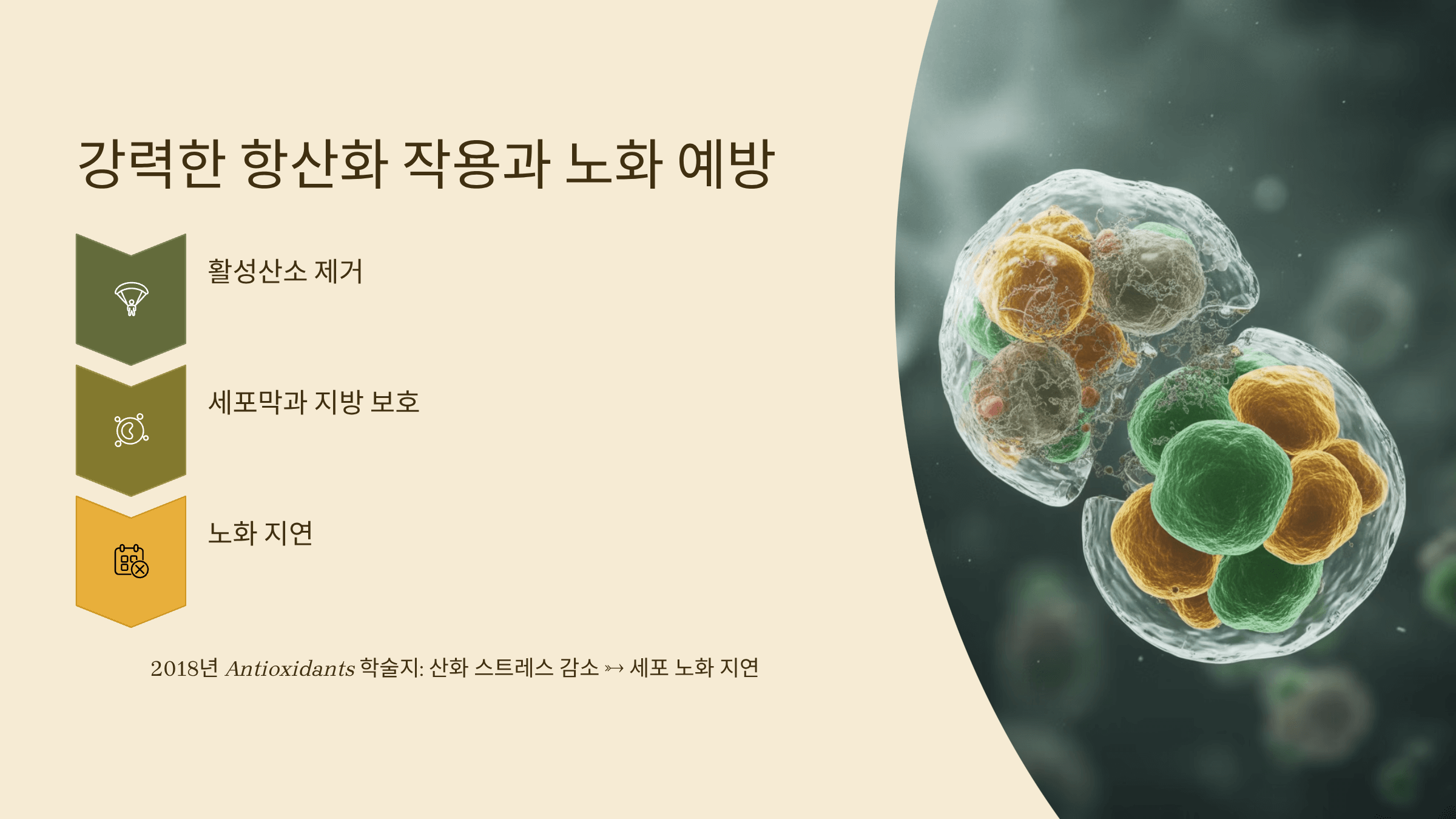 코엔자임 큐텐은 세포 손상을 일으키는 활성산소를 제거해 노화를 늦추는 강력한 항산화제입니다. 특히 세포막과 지방을 보호하는 역할이 강합니다. 2018년 Antioxidants 학술지에서는 코엔자임 큐텐이 산화 스트레스를 줄여 세포 노화를 늦춘다는 결과가 나왔습니다. 저 역시 꾸준히 섭취한 이후 피부가 덜 칙칙해지고 피로가 덜 쌓이는 걸 체감했습니다. 🌟