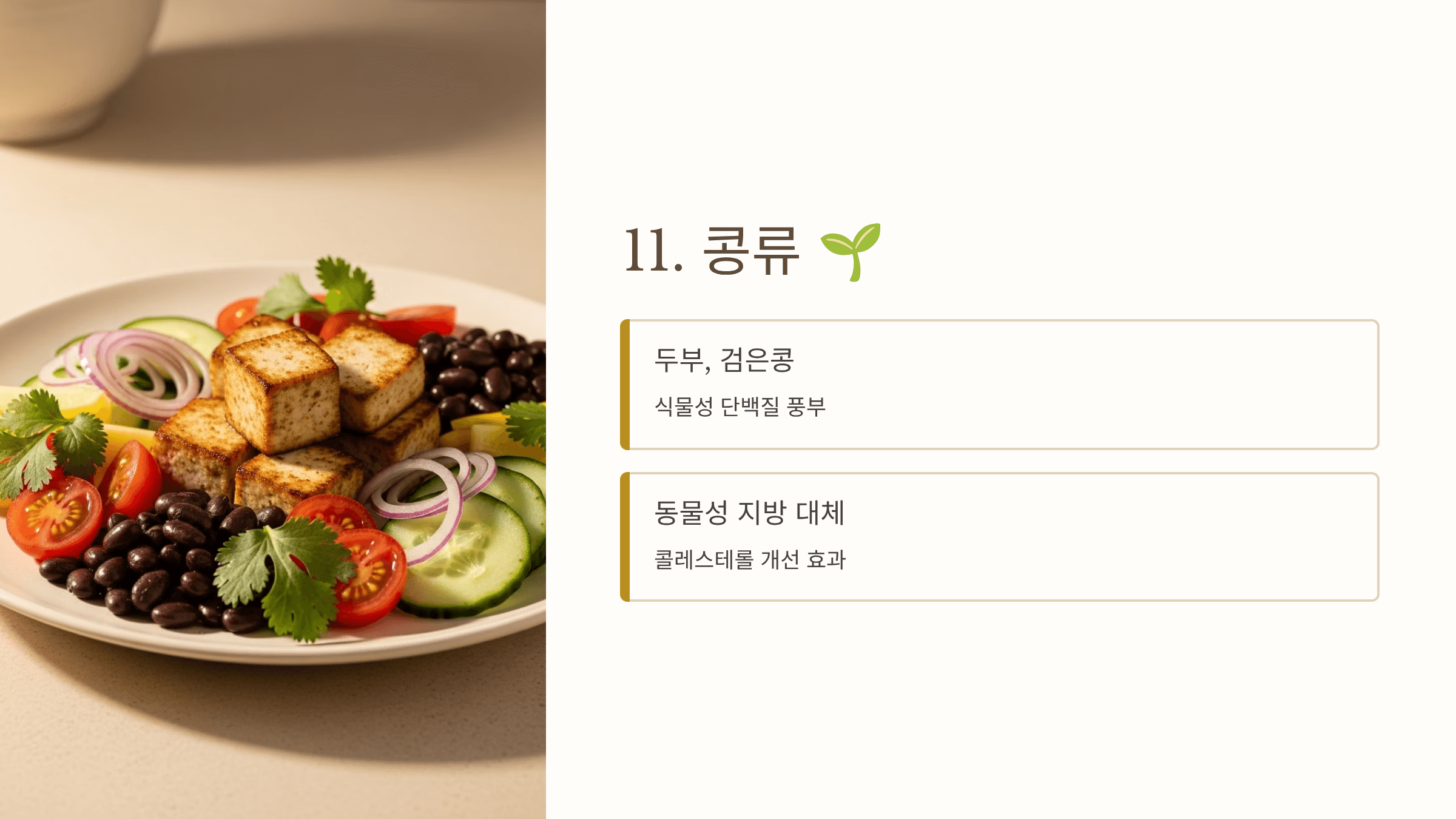 두부, 검은콩 등은 식물성 단백질이 풍부해 동물성 지방 섭취를 줄여줍니다.