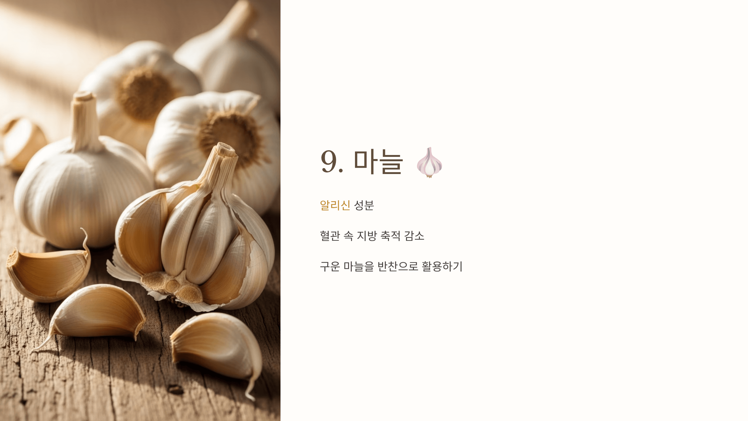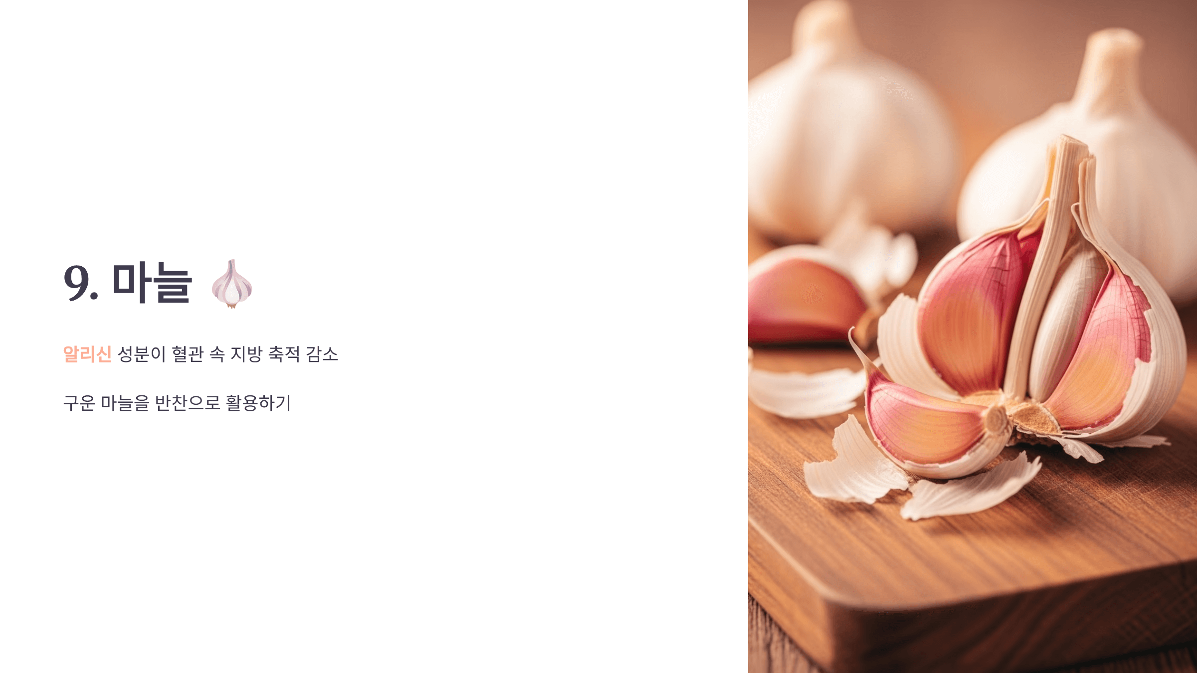 알리신 성분이 혈관 속 지방 축적을 줄여줍니다.