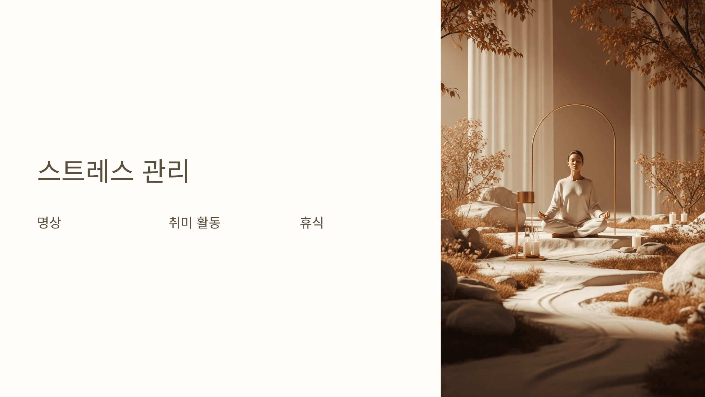 - 스트레스 관리하기 (명상, 취미 활동 등)