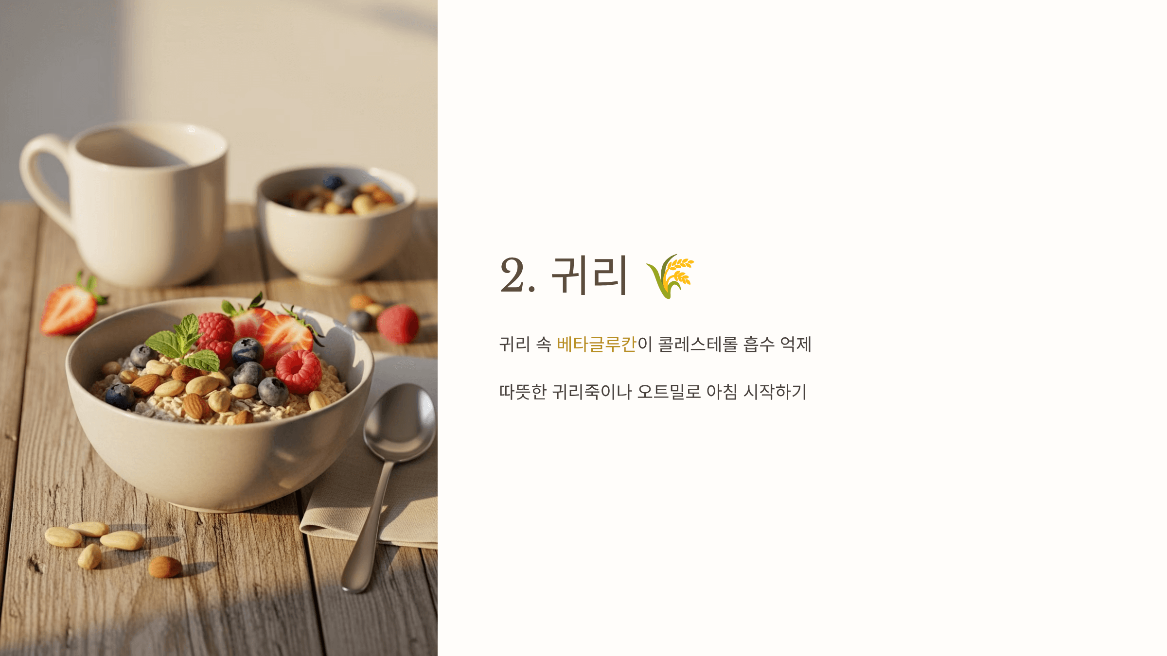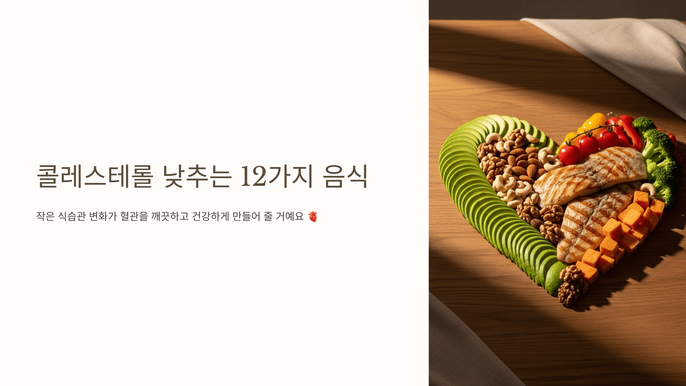 오늘은 콜레스테롤 낮추는 데 효과적인 12가지 음식을 정리해드릴게요.