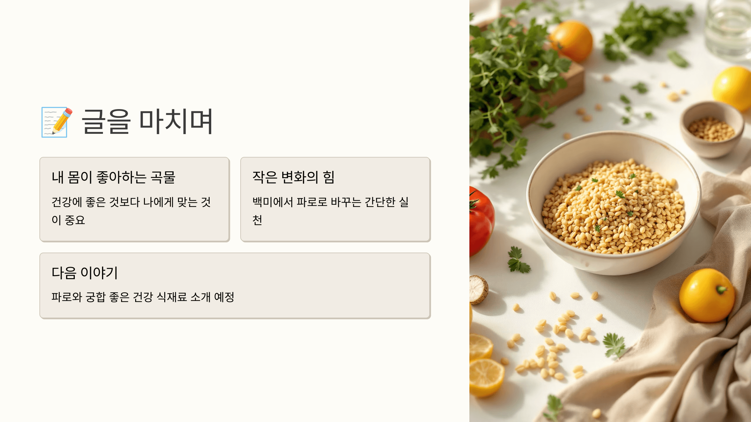 식이섬유부터 단백질까지, 파로 곡물로 달라진 나의 식탁 이야기