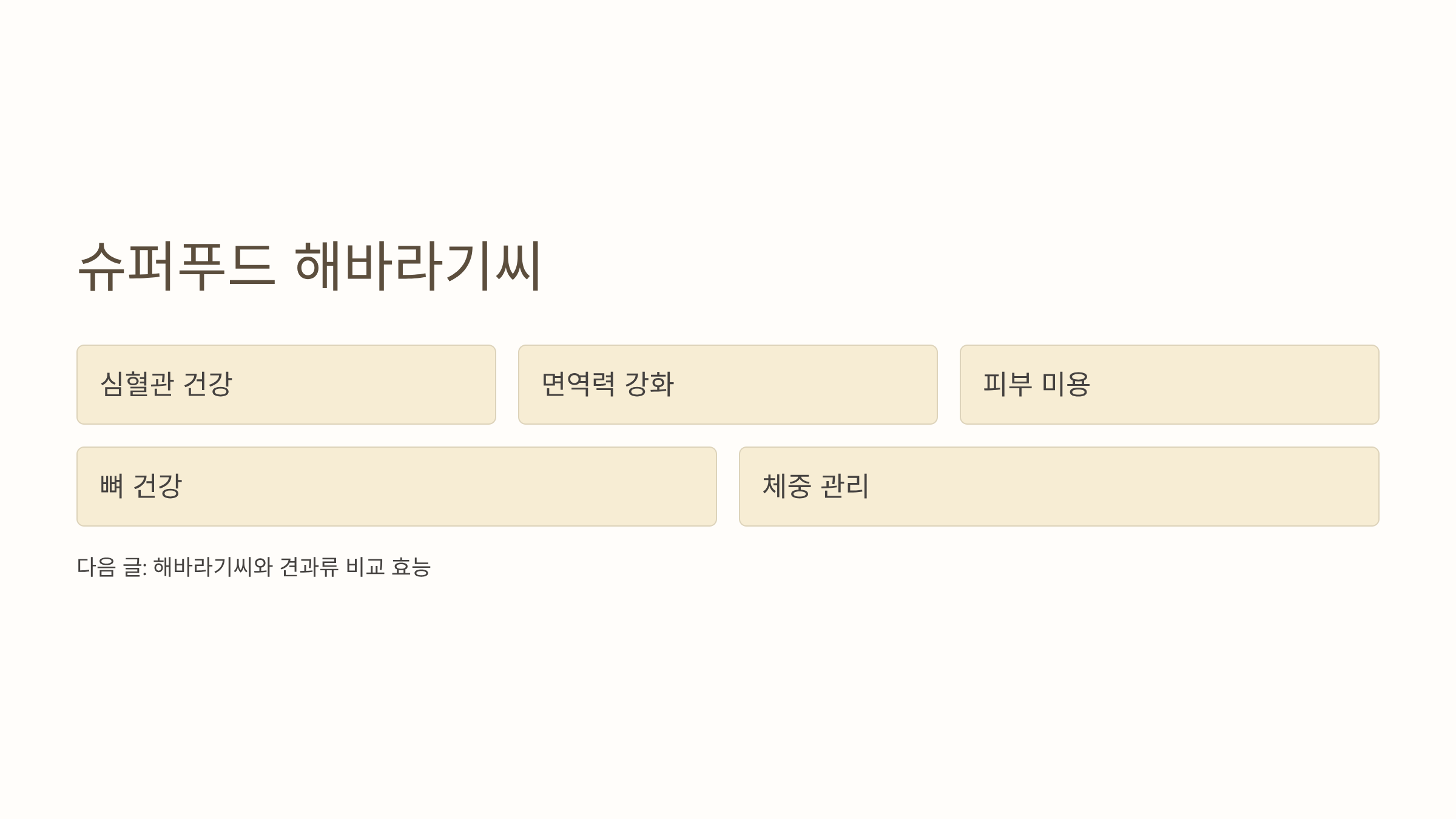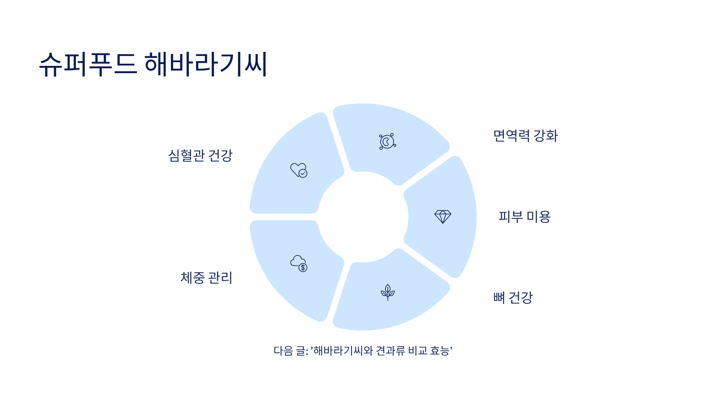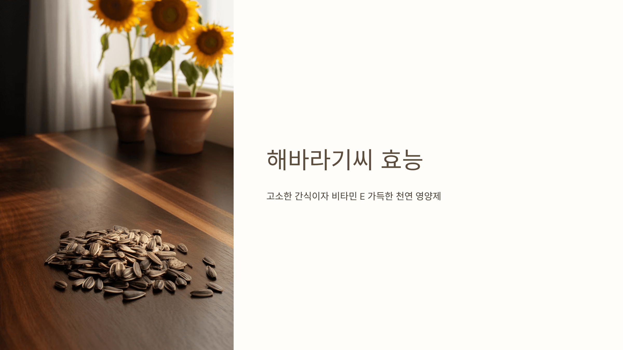 해바라기씨는 작은 씨앗이지만 비타민 E와 불포화지방산 덕분에 심혈관 건강, 면역력 강화, 피부 미용, 뼈 건강, 다이어트까지 챙길 수 있는 슈퍼푸드입니다. 꾸준히 섭취하면 확실히 몸이 달라지는 걸 느낄 수 있어요. 다음 글에서는 ‘해바라기씨와 견과류 비교 효능’을 알려드리겠습니다. 기대해 주세요!