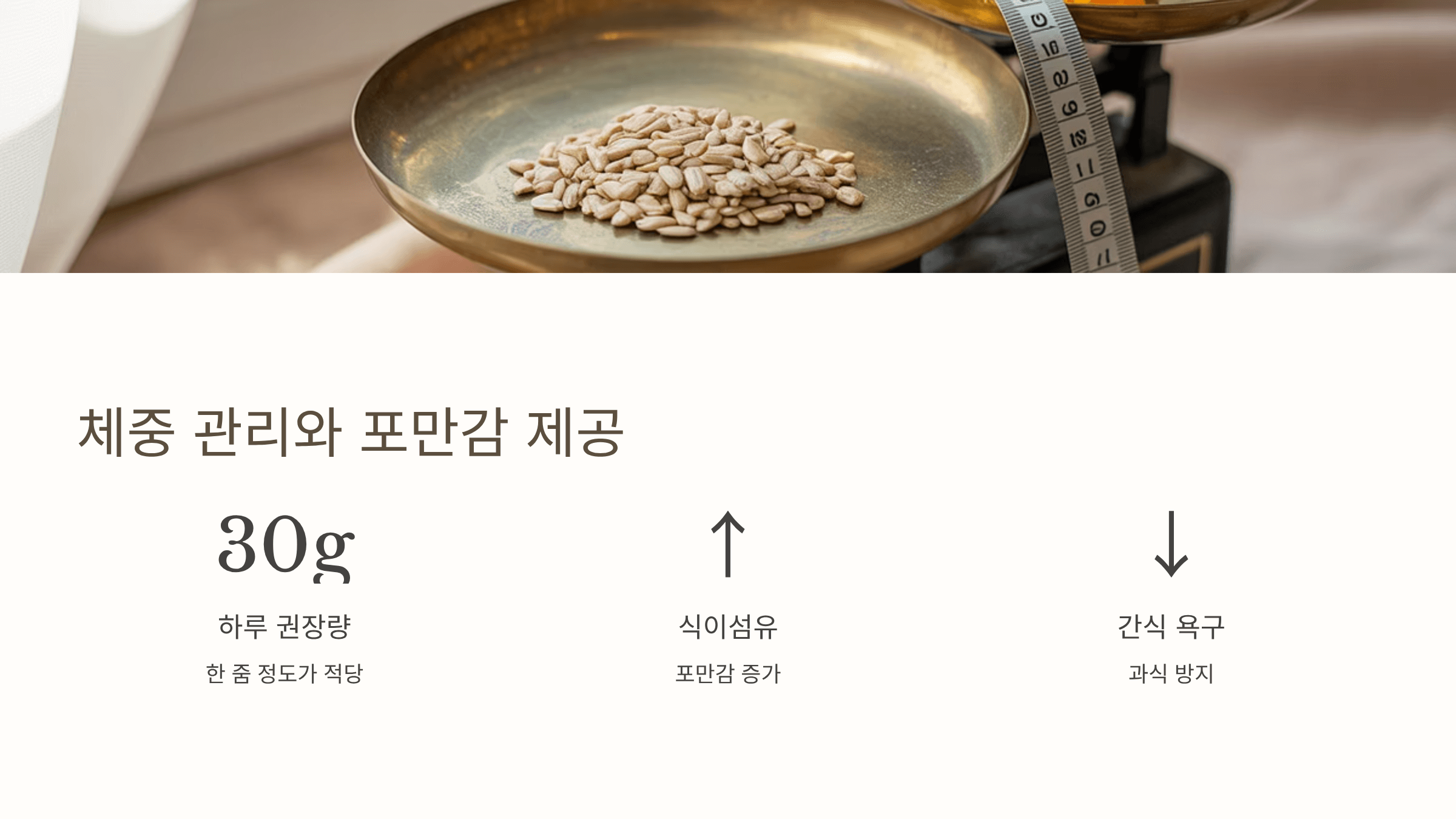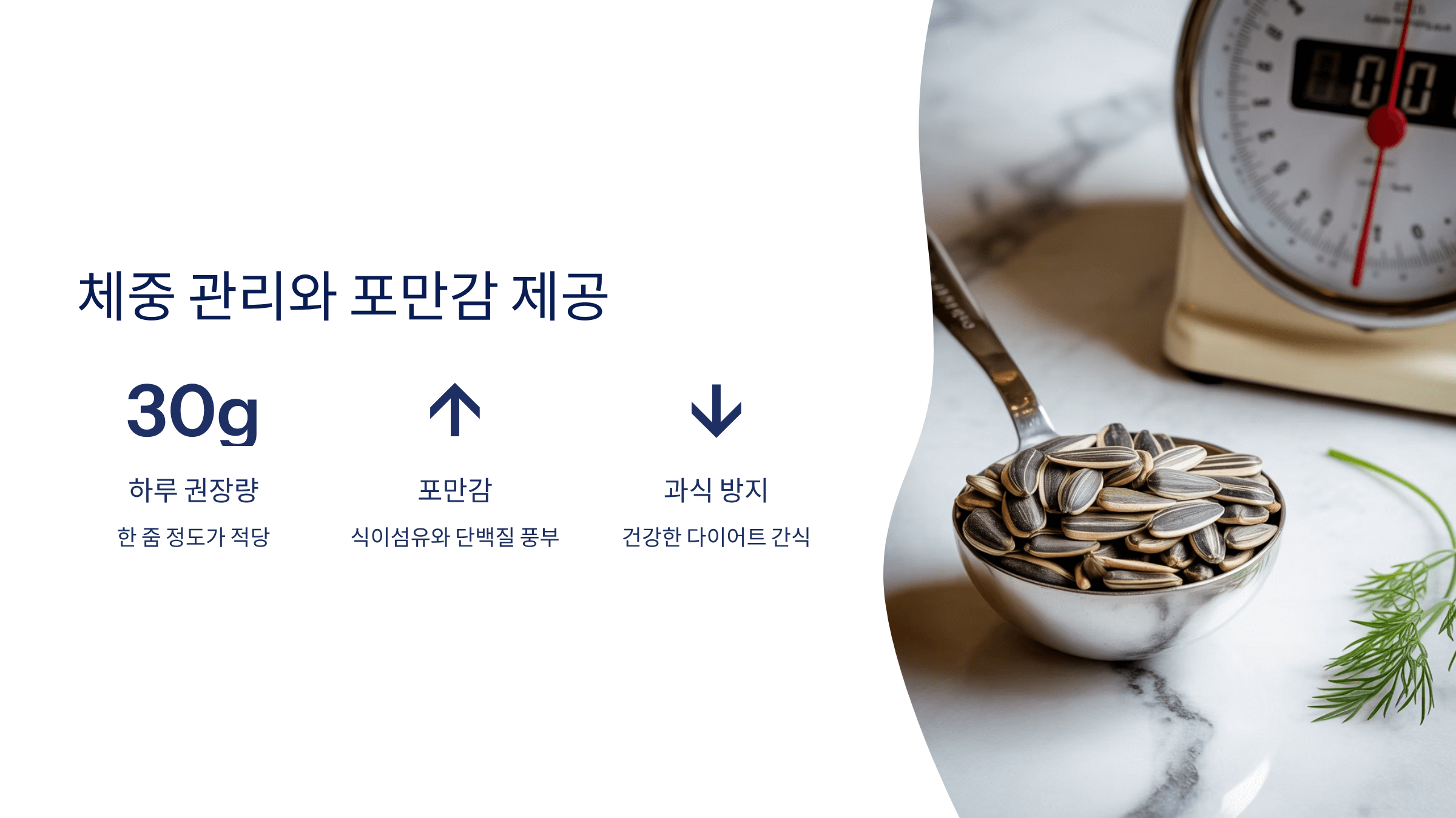 해바라기씨는 식이섬유와 단백질이 풍부해 포만감을 주고 과식 방지에 도움을 줍니다. 다이어트 중에도 건강한 간식으로 즐길 수 있죠. 저도 다이어트할 때 과자 대신 해바라기씨를 챙겼는데, 속이 든든하면서 간식 욕구가 줄어들더라고요. 물론 칼로리가 있으니 하루 한 줌 정도가 적당합니다. ⚖️