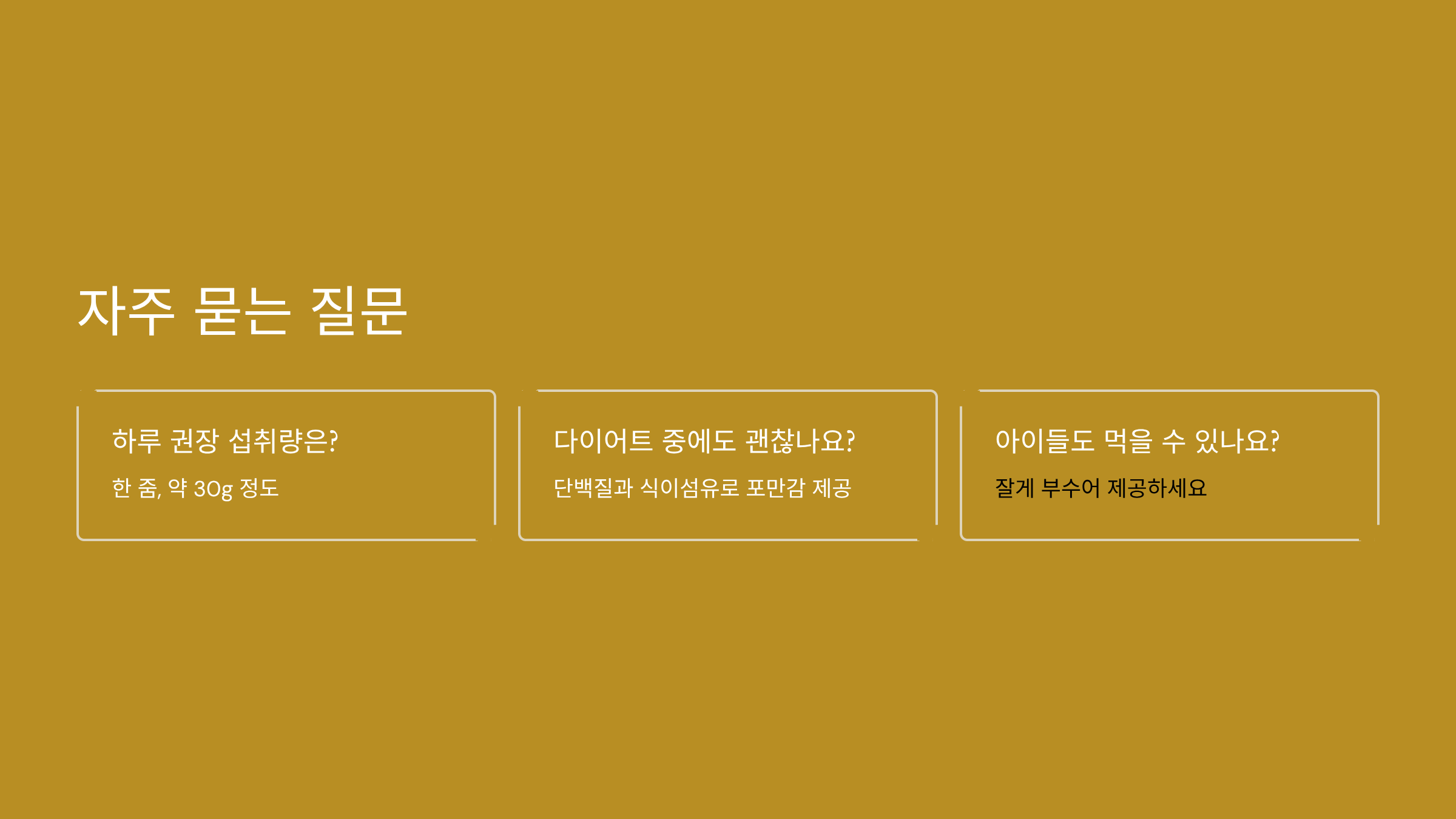 ➡️ 하루 한 줌, 약 30g 정도가 적당합니다.