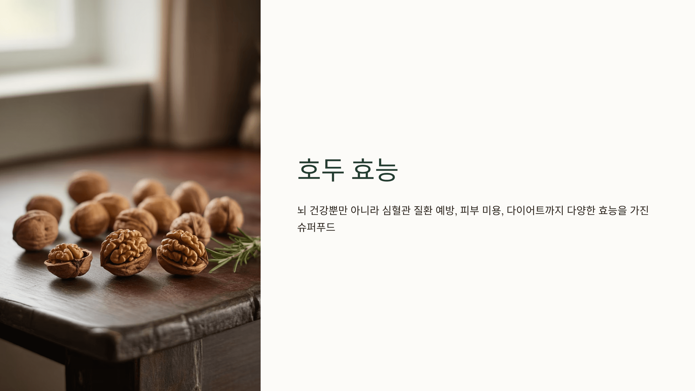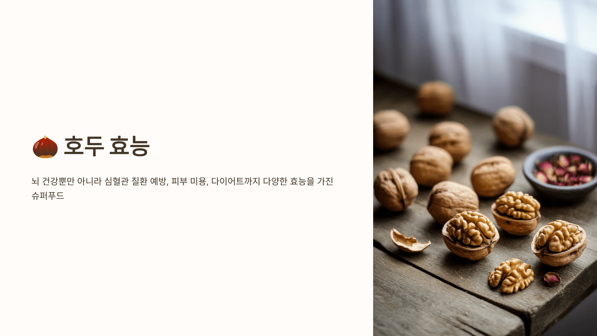 호두는 예로부터 ‘뇌에 좋은 음식’으로 잘 알려져 있습니다. 하지만 단순히 뇌 건강뿐만 아니라 심혈관 질환 예방, 피부 미용, 다이어트까지 다양한 효능을 가진 슈퍼푸드라는 사실 알고 계셨나요? 저도 간식 대용으로 호두를 꾸준히 챙겨 먹으면서 여러 가지 변화를 체감했습니다. 오늘은 호두 효능을 제가 직접 경험한 부분까지 곁들여 자세히 알려드릴게요!