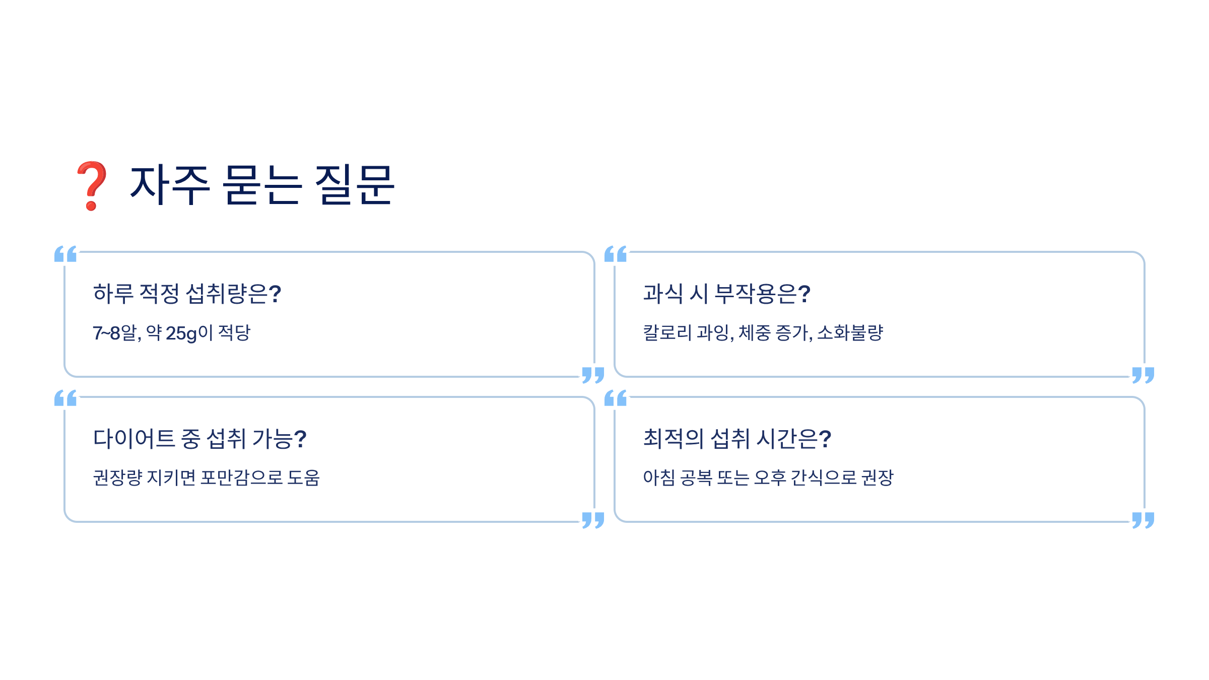 👉 하루 7~8알, 약 25g이 적당합니다.