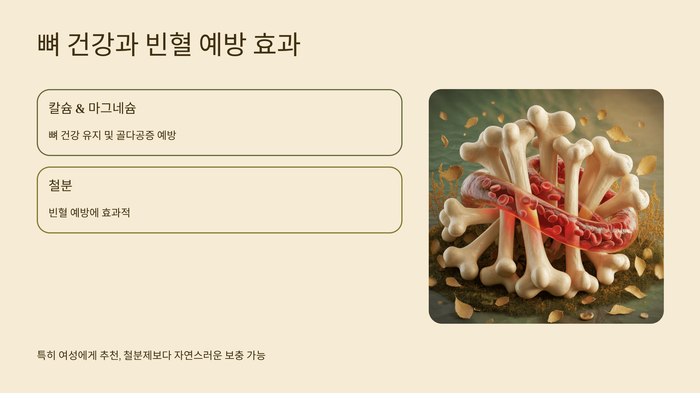 - 뼈 건강과 빈혈 예방 효과