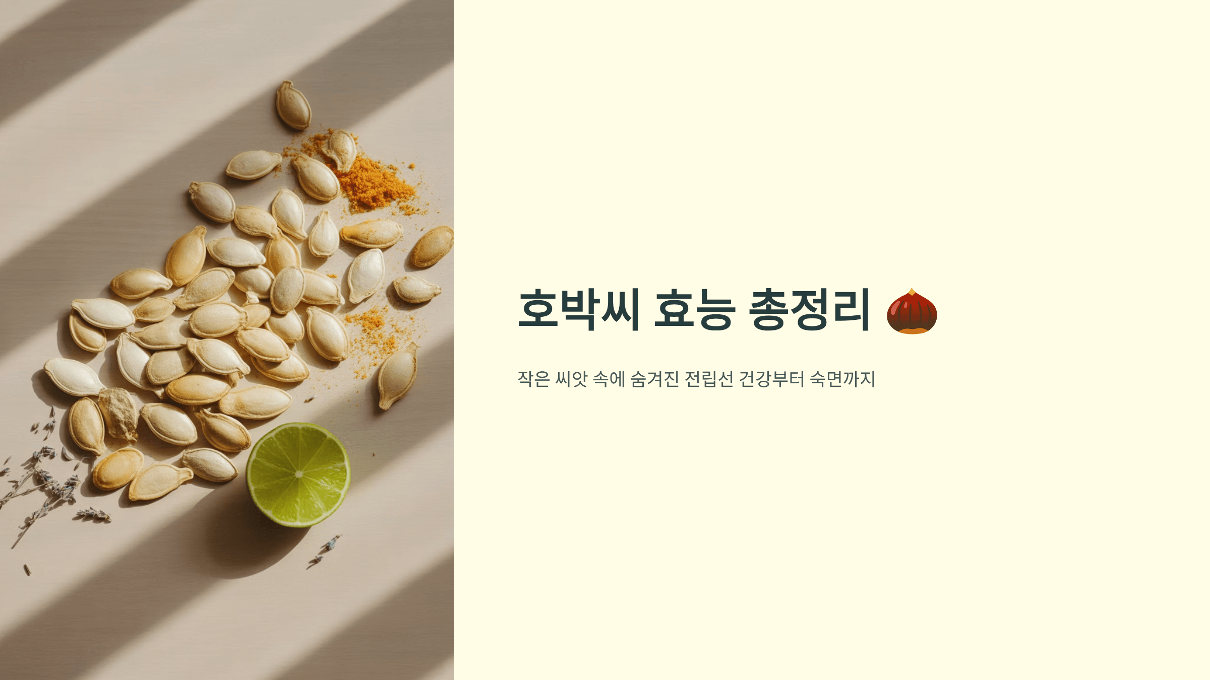 호박씨는 고소한 맛 덕분에 간식처럼 즐기기에도 좋지만, 사실 건강 효과가 정말 뛰어나서 ‘자연이 준 종합 영양제’라고 불릴 만큼 많은 효능을 가지고 있어요. 저도 과자 대신 호박씨를 먹기 시작하면서 체력이 회복되는 느낌을 받았고, 특히 숙면 효과가 있어서 요즘은 자기 전 필수 루틴이 되었답니다. 이번 글에서는 호박씨의 놀라운 효능을 하나씩 정리해 드릴게요.