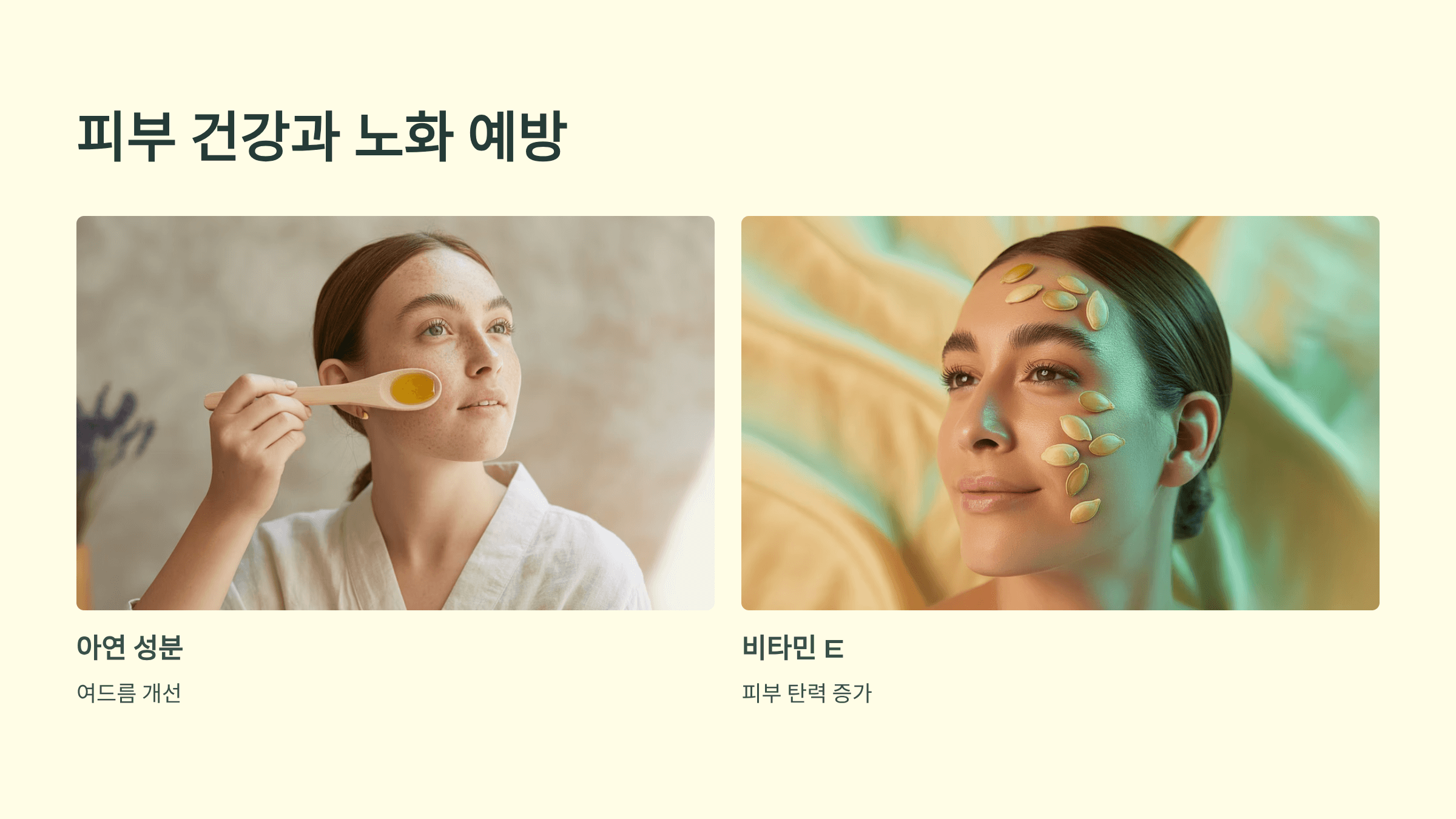 호박씨 속 비타민 E와 아연은 피부 미용에도 좋아요. 항산화 작용으로 피부 노화를 늦추고, 여드름 개선에도 도움을 줍니다. 특히 겨울철 건조할 때 호박씨를 꾸준히 먹으니 피부가 촉촉해지고 탄력이 좋아진 걸 느꼈어요. 외부 화장품만큼 중요한 게 바로 이런 식이 관리라는 걸 실감했습니다. ✨